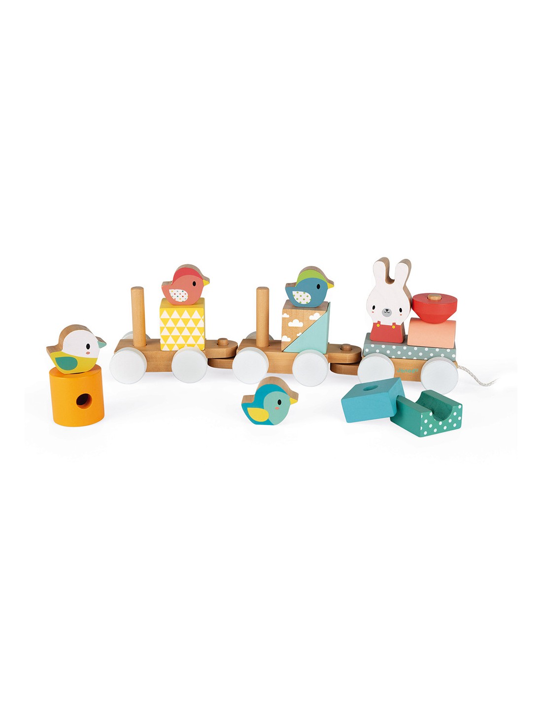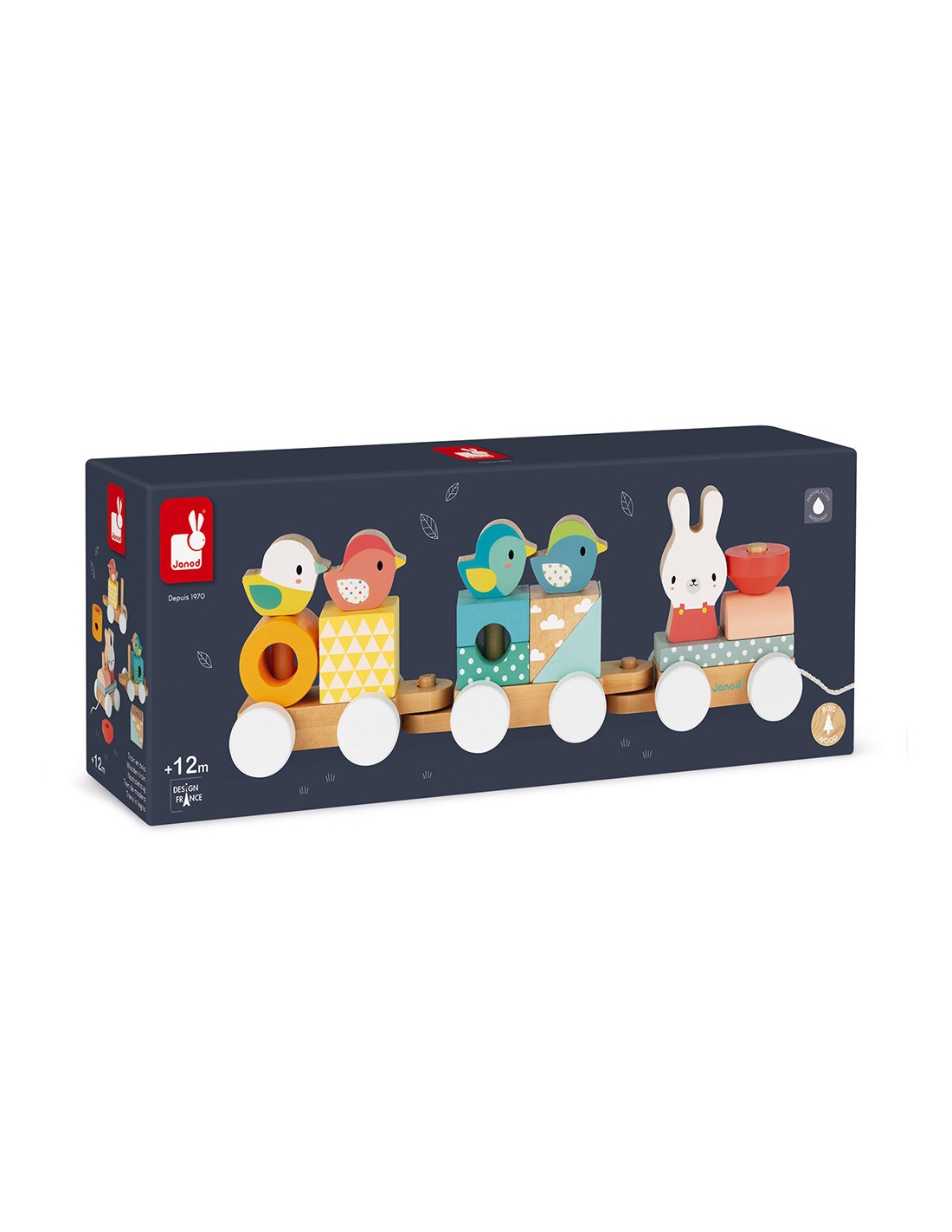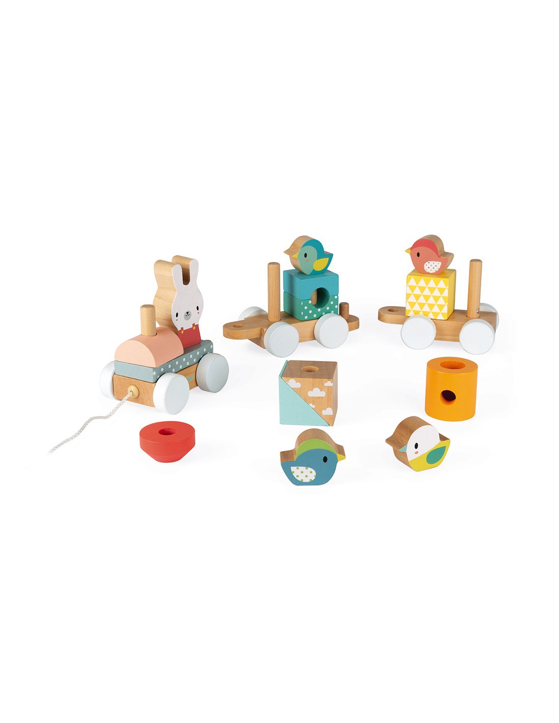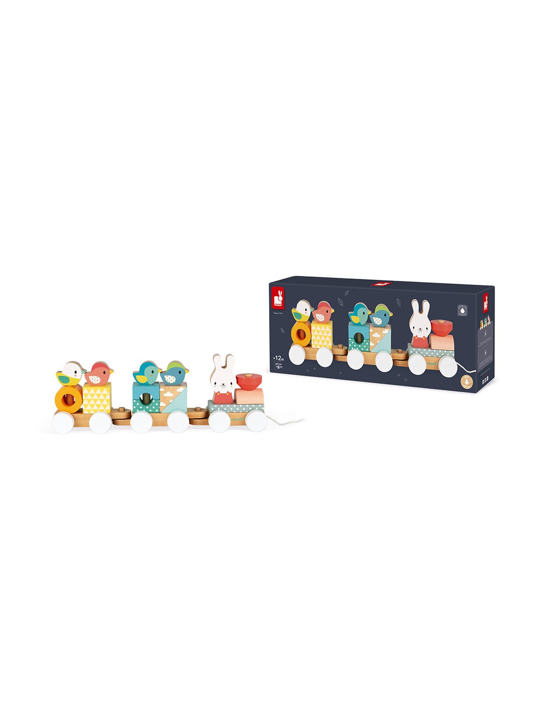Este juguete 2 en 1 de la colección Pure es un bonito tren de madera en tonos muy suaves y actuales. Compuesto por tres vagones, es un juguete de arrastre que al niño le encantará llevarse a todas partes, desarrollando así su motricidad. Este tren de madera también está compuesto por 17 bloques de diferentes formas y colores y por unos preciosos animales que viajan a bordo del tren y serán los compañeros favoritos del bebé. Este precioso juguete de primera infancia es ideal a partir de 1 año y permitirá al bebé manipular los diferentes cubos mientras intenta reconstruir el bonito tren.