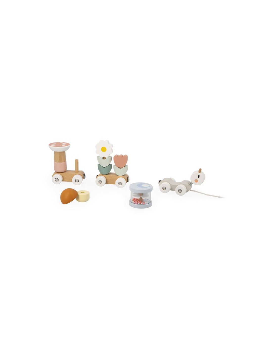 Estimule la motricidad gruesa y la imaginación de su bebé con este tierno juguete andador. Nos encantan sus ruedecitas de madera, sus divertidas setas y sus bonitos colores. Mide 32 x 6 x 12,5 cm y viene con una cuerda de 50 cm. De nuestra colección Sweet Cocoon, este tren caracol de madera está fabricado con madera certificada FSC™.