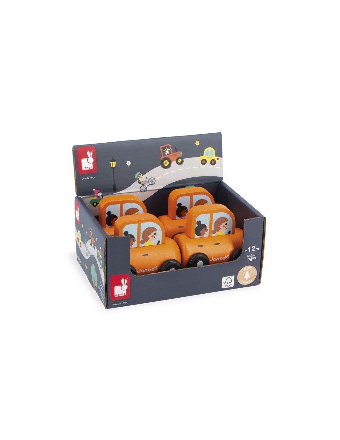 "Todos al coche, ¡al cine!" Este cochecito de madera es perfecto para niños a partir de 12 meses. Con su bonito color naranja, es un coche familiar espacioso, ideal para los paseos en familia. Su forma ha sido especialmente diseñada para que los más pequeños puedan agarrarlo fácilmente y hacerlo rodar. ¡Los vehículos son perfectos para inventar historias y desarrollar su imaginación! Los bebés se divierten primero haciéndolos rodar, luego los niños más mayores pueden contarse todo tipo de aventuras y desarrollar su vocabulario y creatividad.