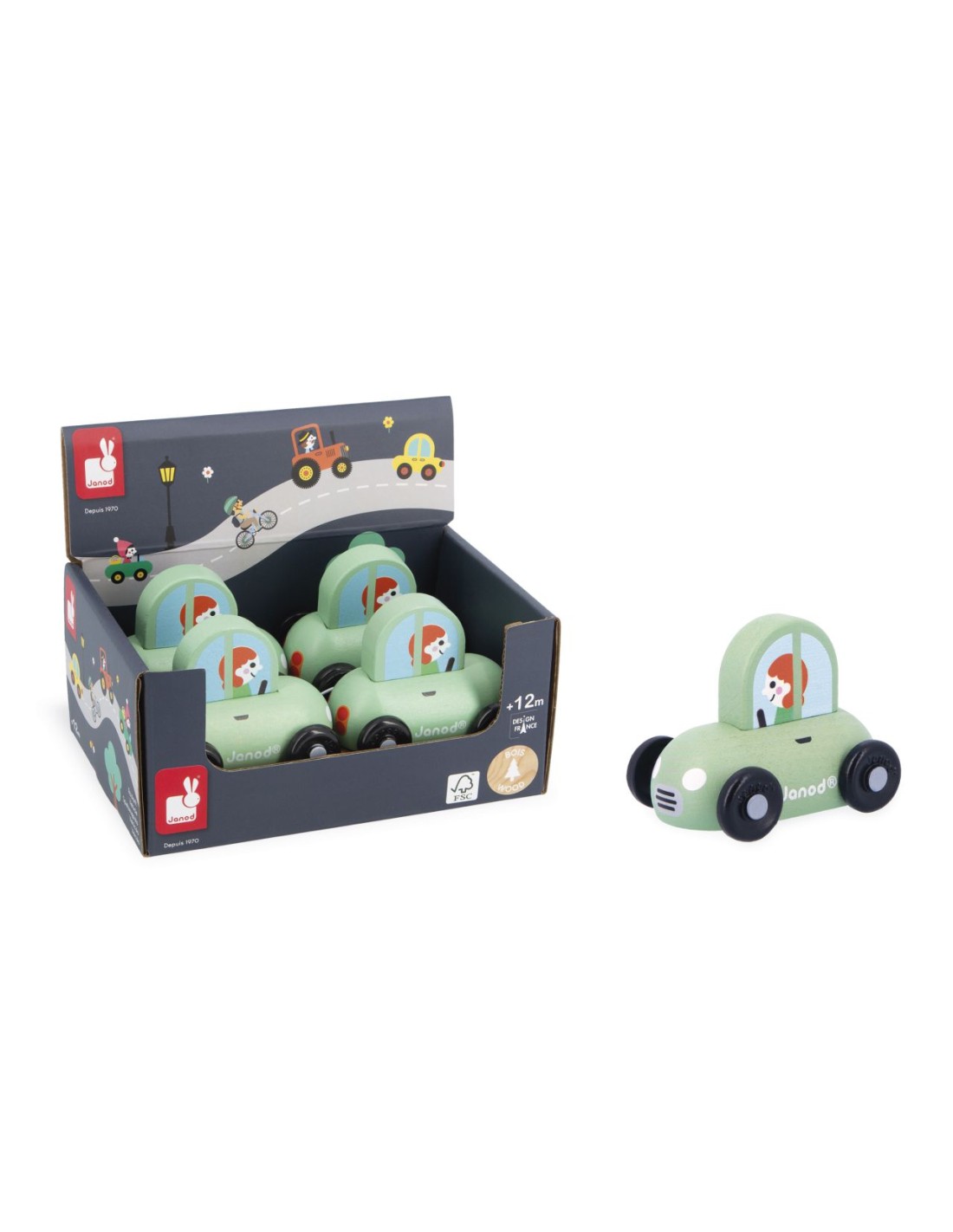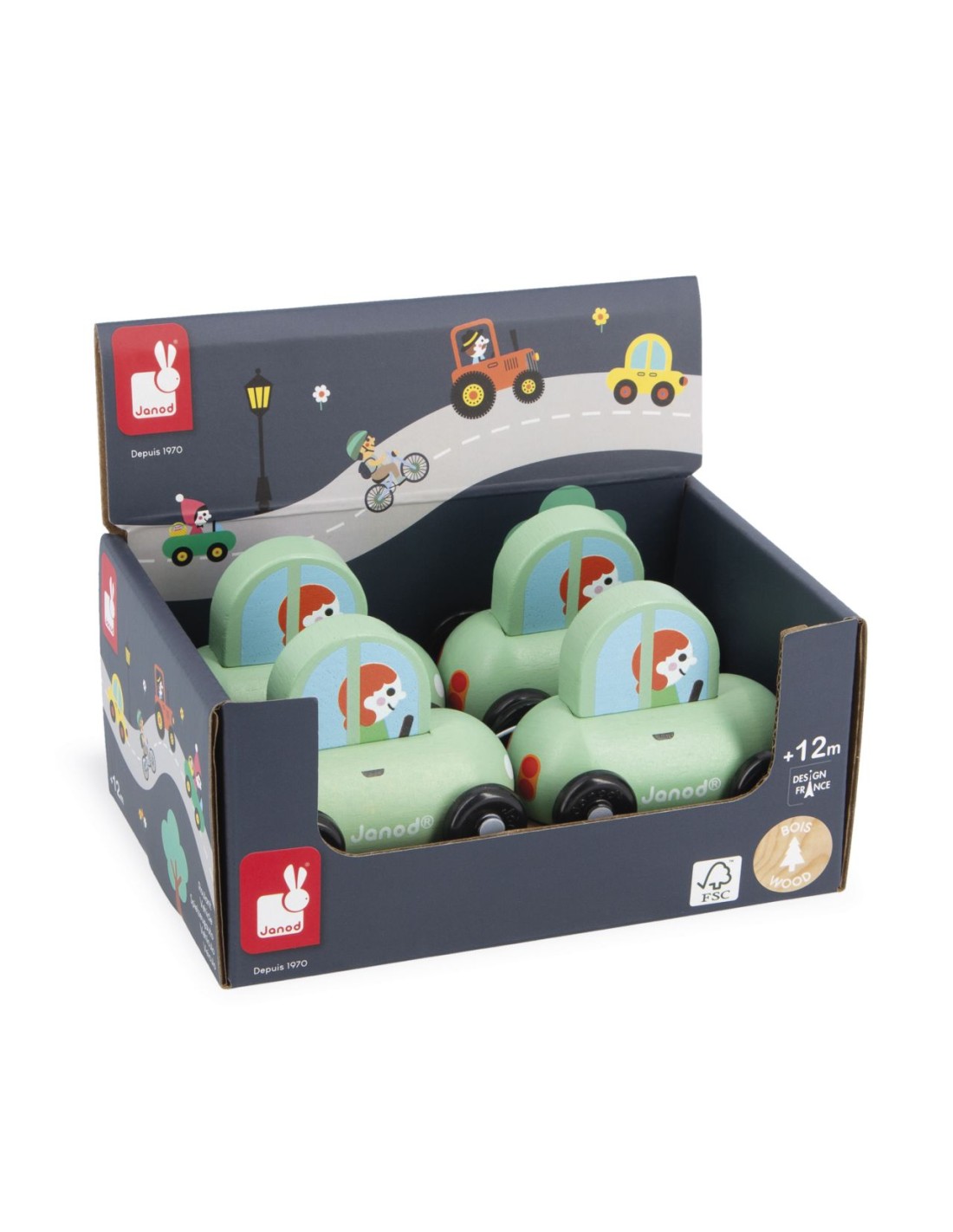 "¡Al supermercado!" Este cochecito de madera es perfecto para niños a partir de 12 meses. En su bonito color verde, es una berlina compacta, ideal para moverse por la ciudad sin problemas. Su forma ha sido especialmente diseñada para que los más pequeños puedan agarrarlo fácilmente y rodar con él. Los vehículos son perfectos para inventar historias y desarrollar su imaginación. Primero, los bebés se divierten haciéndolos rodar; después, los niños más mayores pueden contarse todo tipo de aventuras y desarrollar su vocabulario y creatividad.