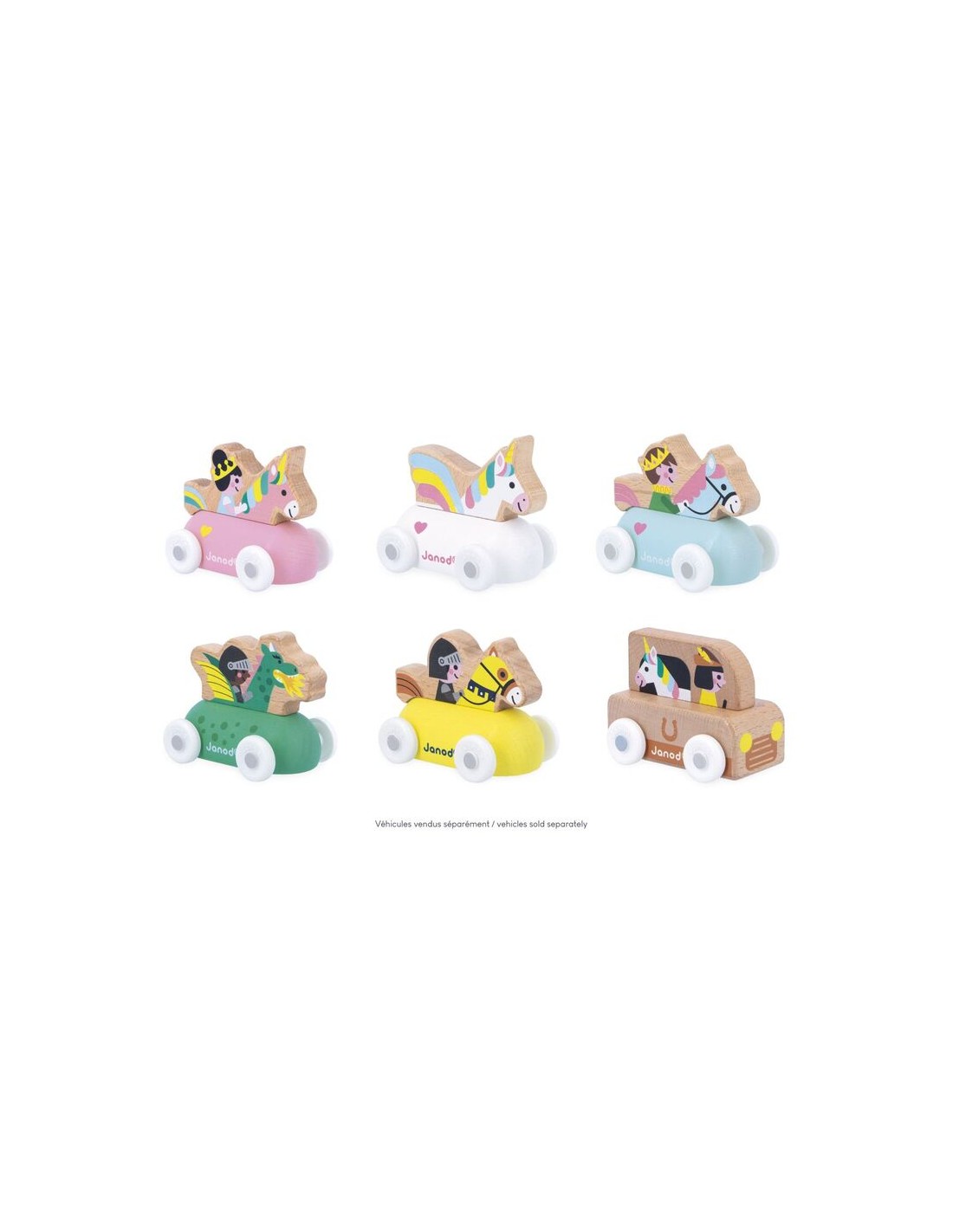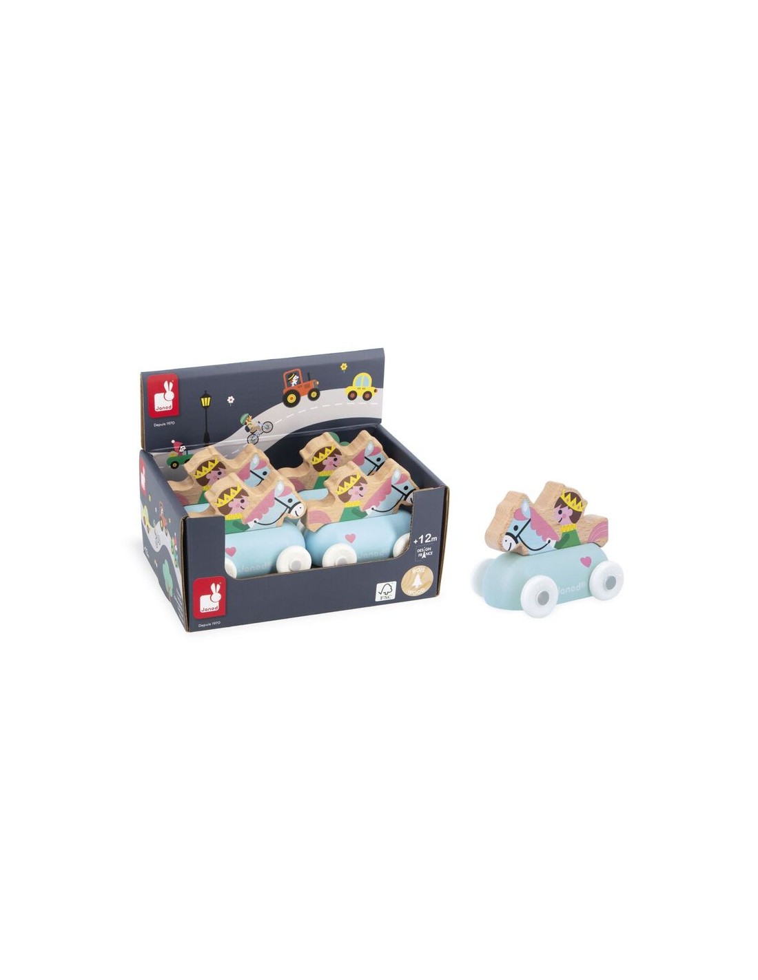 "¡Hu! ¡Al torneo de justas!" Este pequeño carruaje de madera es perfecto para niños a partir de 12 meses. En su caballo rodante, el Príncipe del Reino Encantado atraviesa a toda velocidad las vastas tierras. Su forma ha sido especialmente diseñada para que los más pequeños puedan sujetarlo y hacerlo rodar con facilidad. Los vehículos son perfectos para inventar historias y desarrollar la imaginación. Primero, los bebés se divierten haciéndolos rodar; después, los niños más mayores pueden contarse todo tipo de aventuras y desarrollar su vocabulario y creatividad.