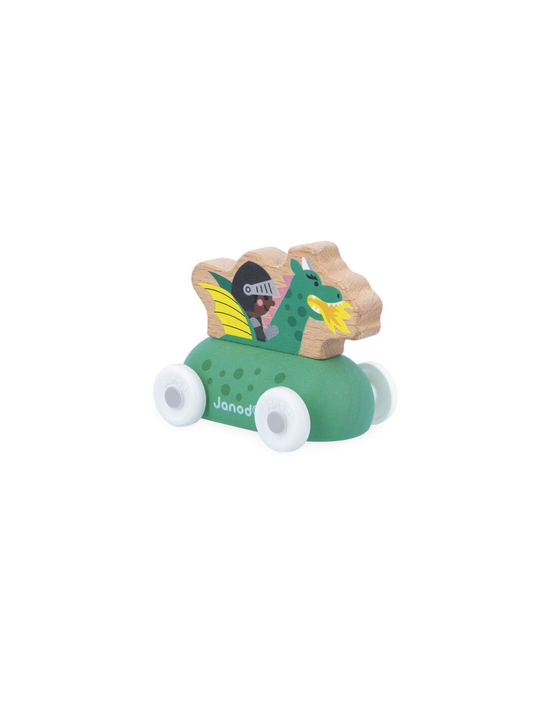 "¡La defensa del castillo está asegurada gracias a este valiente dragón!" Este pequeño carruaje de madera es perfecto para niños a partir de 12 meses. Con su dragón rodante, el valiente caballero no teme ni a los trolls ni a las brujas. Su forma ha sido especialmente diseñada para que los más pequeños puedan sujetarlo y hacerlo rodar con facilidad. Los vehículos son perfectos para inventar un montón de historias y desarrollar su imaginación. Primero, los bebés se divierten haciéndolos rodar; después, los niños más mayores pueden contarse todo tipo de aventuras y desarrollar su vocabulario y creatividad.