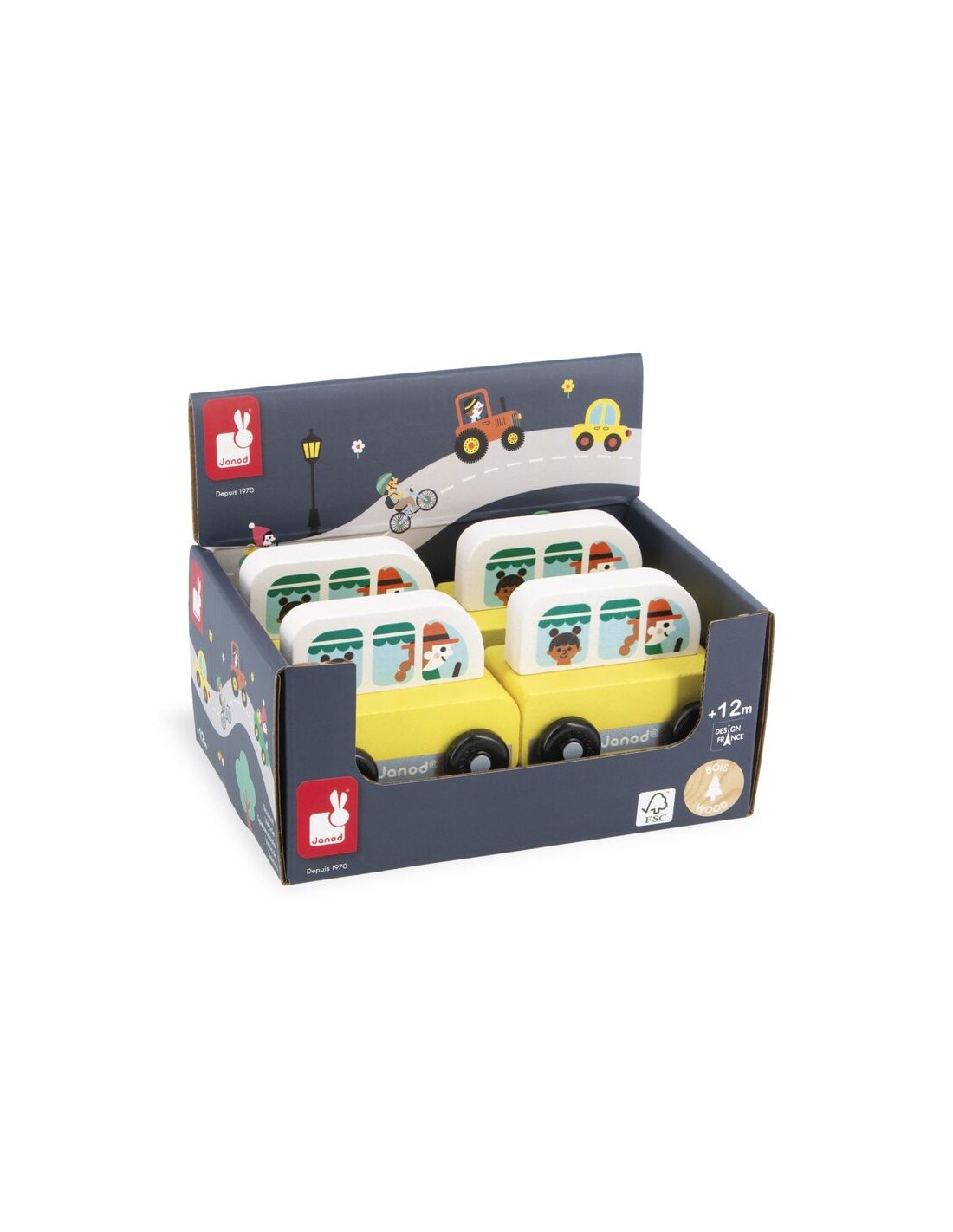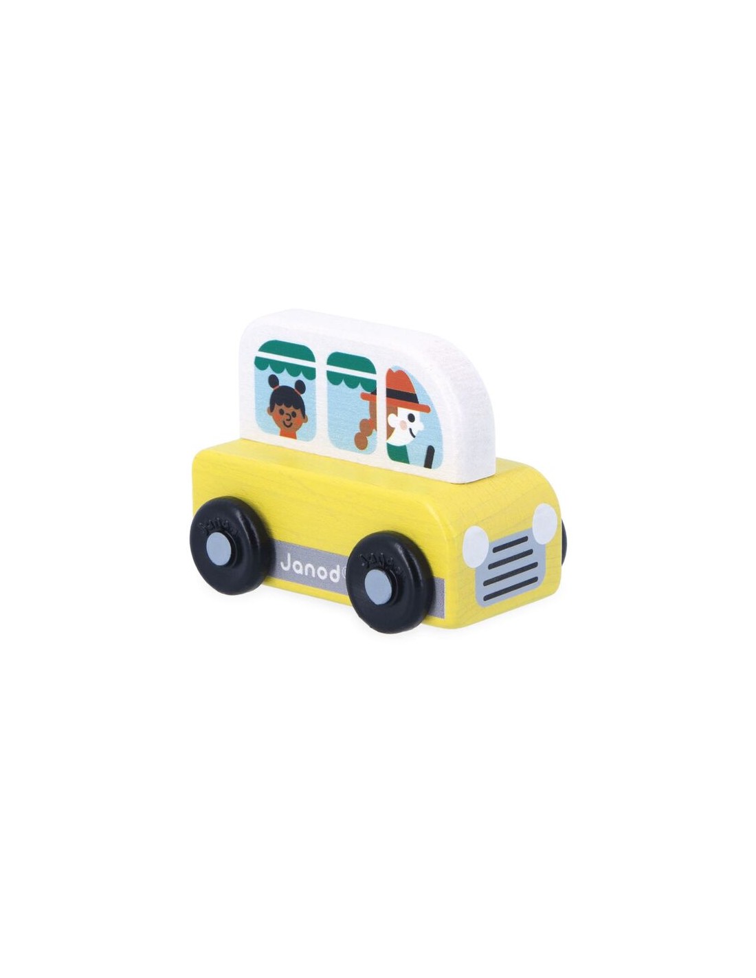 "¡Todos a bordo de la furgoneta, y rumbo al lago! Este cochecito de madera es perfecto para niños a partir de 12 meses. Con su furgoneta amarilla, esta familia aprovecha su estancia en el campo para realizar todo tipo de actividades al aire libre. La forma de la furgoneta se ha diseñado especialmente para que los más pequeños puedan sujetarla y hacerla rodar con facilidad. Los vehículos son perfectos para inventar historias y desarrollar su imaginación. Primero, los bebés se divierten haciéndolos rodar; después, los niños más mayores pueden contarse todo tipo de aventuras y desarrollar su vocabulario y creatividad. Este pequeño coche Janod forma parte de nuestra colección Cross Roads: una serie de alfombras de juego con circuitos, que resultan aún más divertidas cuando se complementan con nuestros juegos de cubos y pequeños vehículos de madera. La furgoneta es especialmente adecuada para la alfombra de juego Campiña, pero también combina bien con otras alfombras de la gama. Está fabricada con madera procedente de bosques gestionados de forma sostenible, con certificado FSC™. "¿Pero quién se ha olvidado las toallas?".