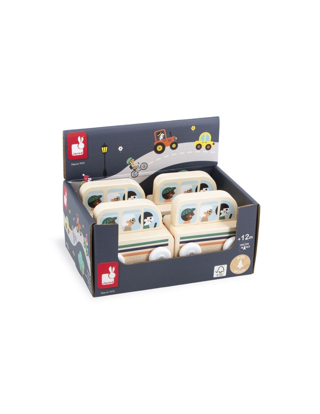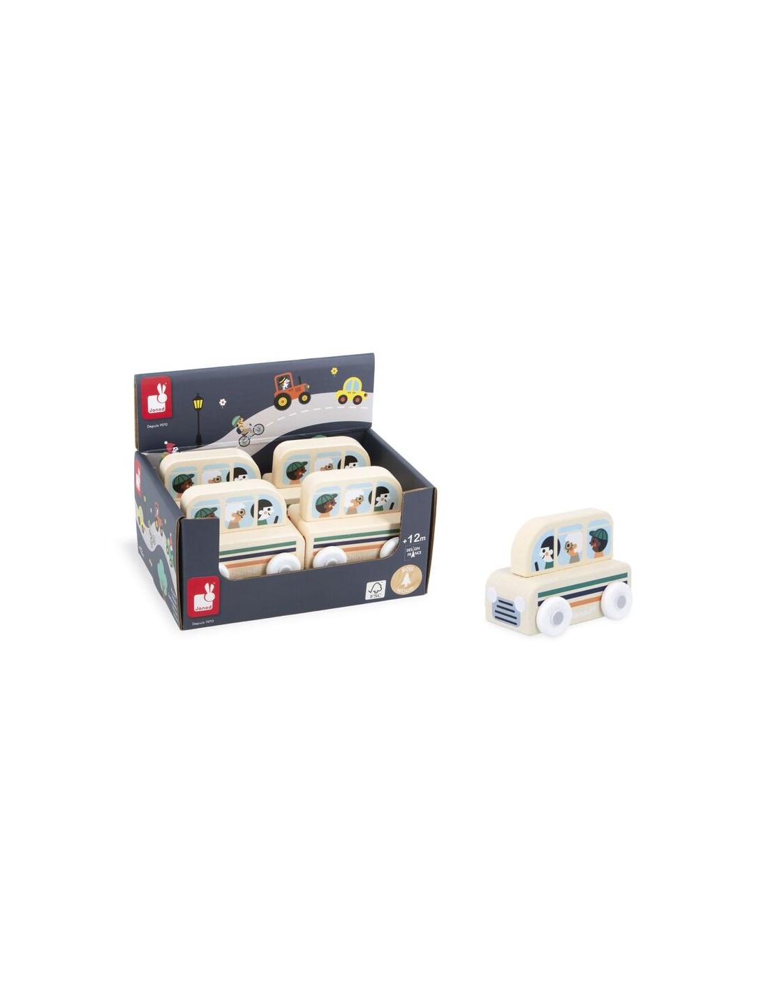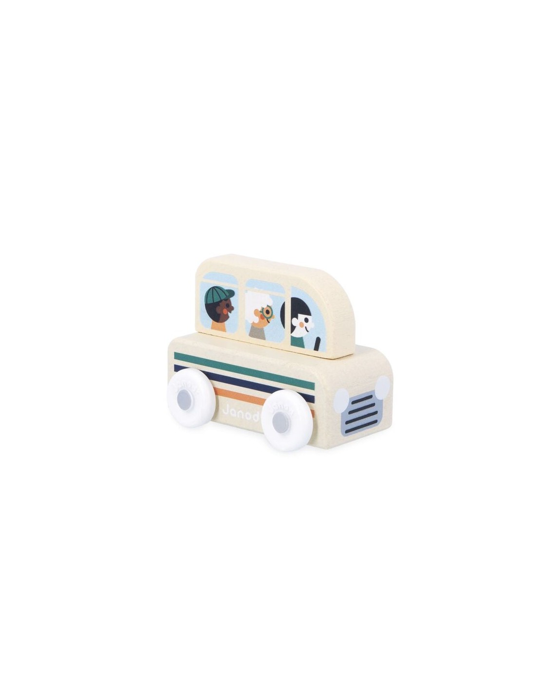 "El autobús está listo para partir, ¡abróchense los cinturones!". Este cochecito de madera es perfecto para niños a partir de 12 meses. Este bonito autobús con estampado de rayas llevará tanto a los vecinos como a los turistas a la estación o al camping. Su forma se ha diseñado especialmente para que los más pequeños puedan sujetarlo y hacerlo rodar con facilidad. ¡Los vehículos son perfectos para inventar historias y desarrollar su imaginación! Los bebés primero se divierten haciéndolos rodar, luego los niños más mayores pueden contarse todo tipo de aventuras y desarrollar su vocabulario y creatividad.