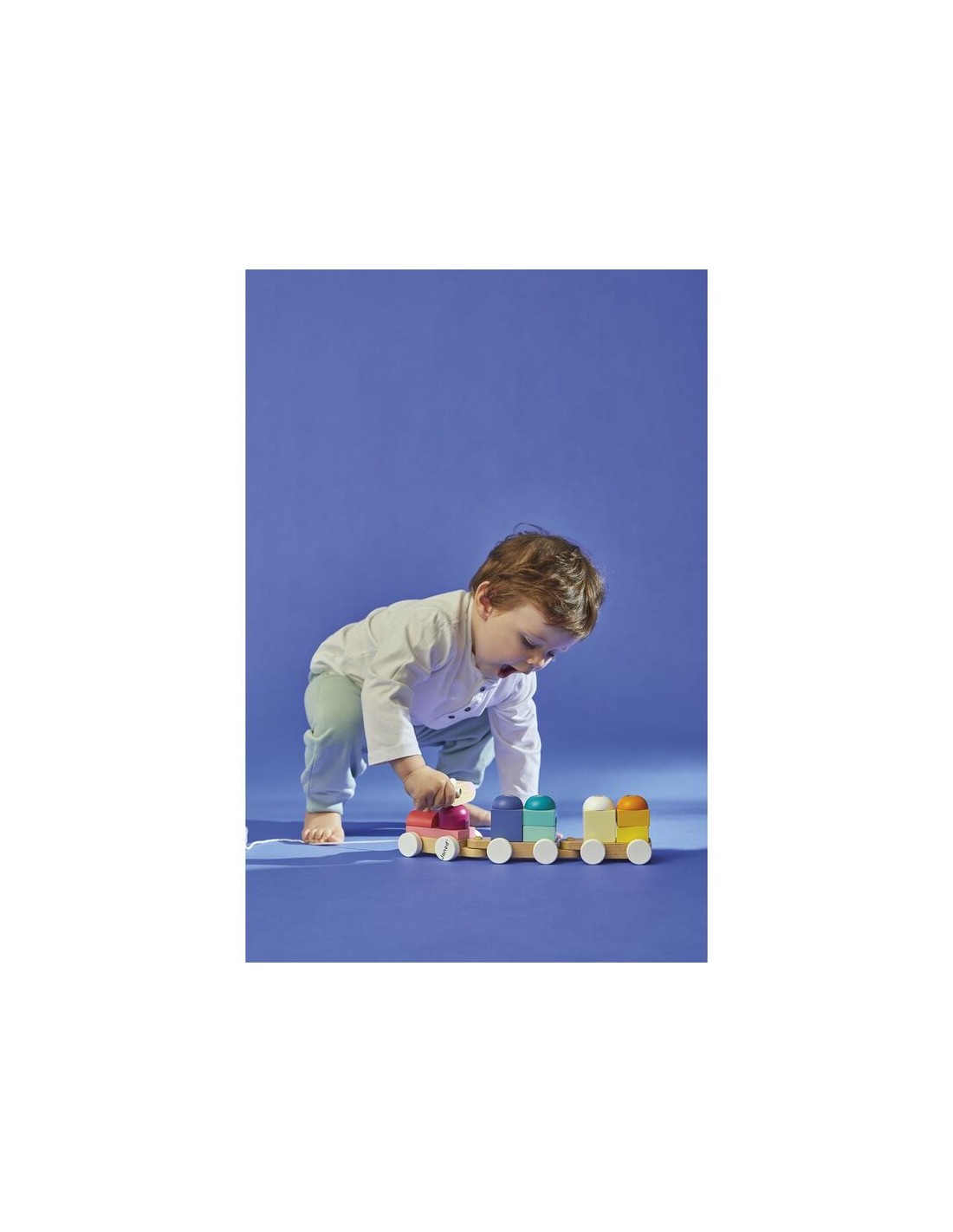 Este trenecito de madera destaca por su diseño tierno y colorido, formando parte de la prestigiosa colección Zigolos, reconocida por su durabilidad y su capacidad para estimular los sentidos de forma natural.