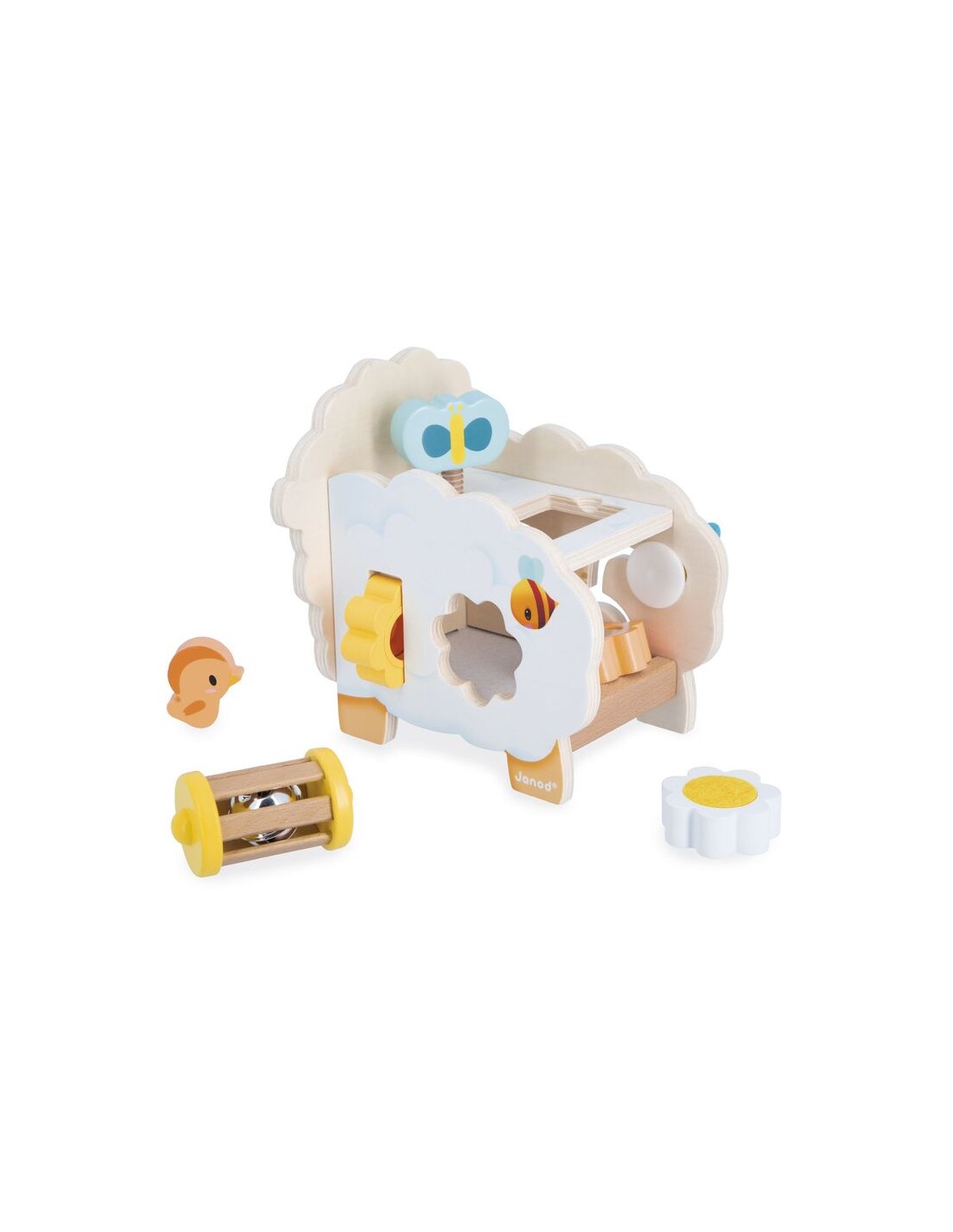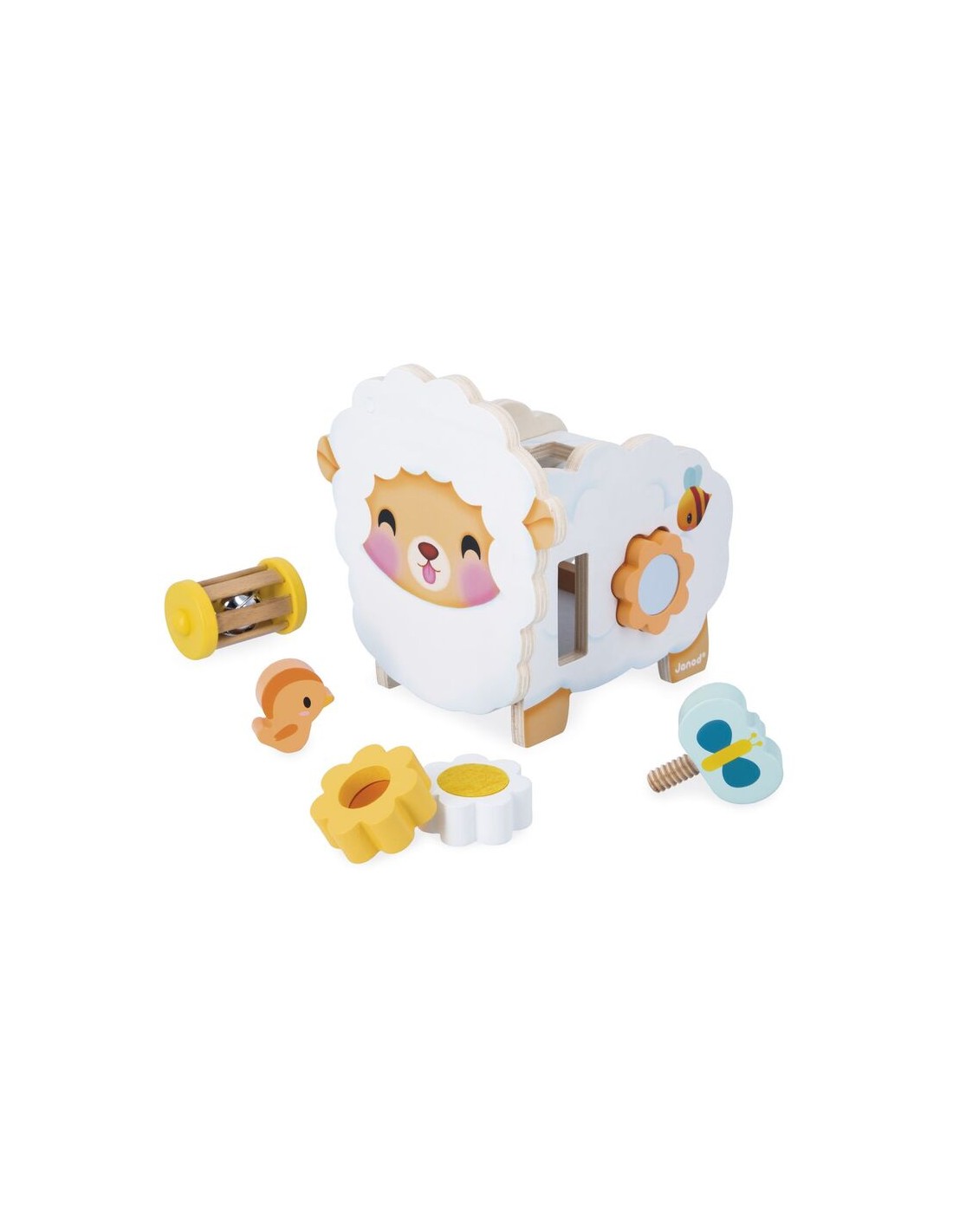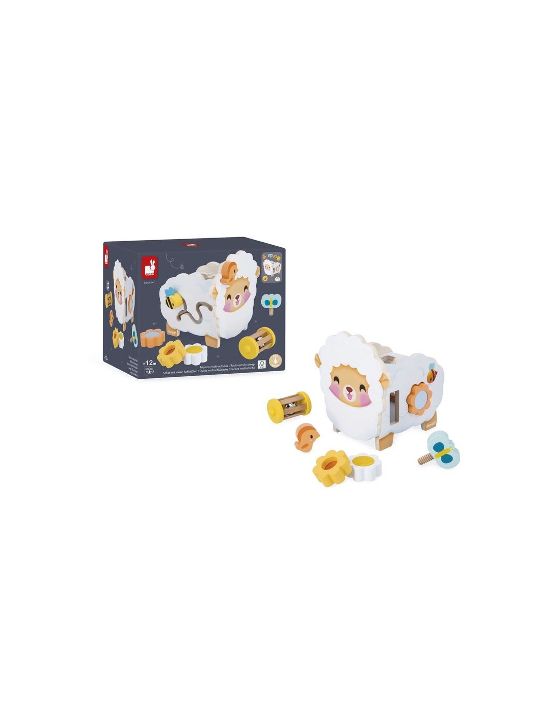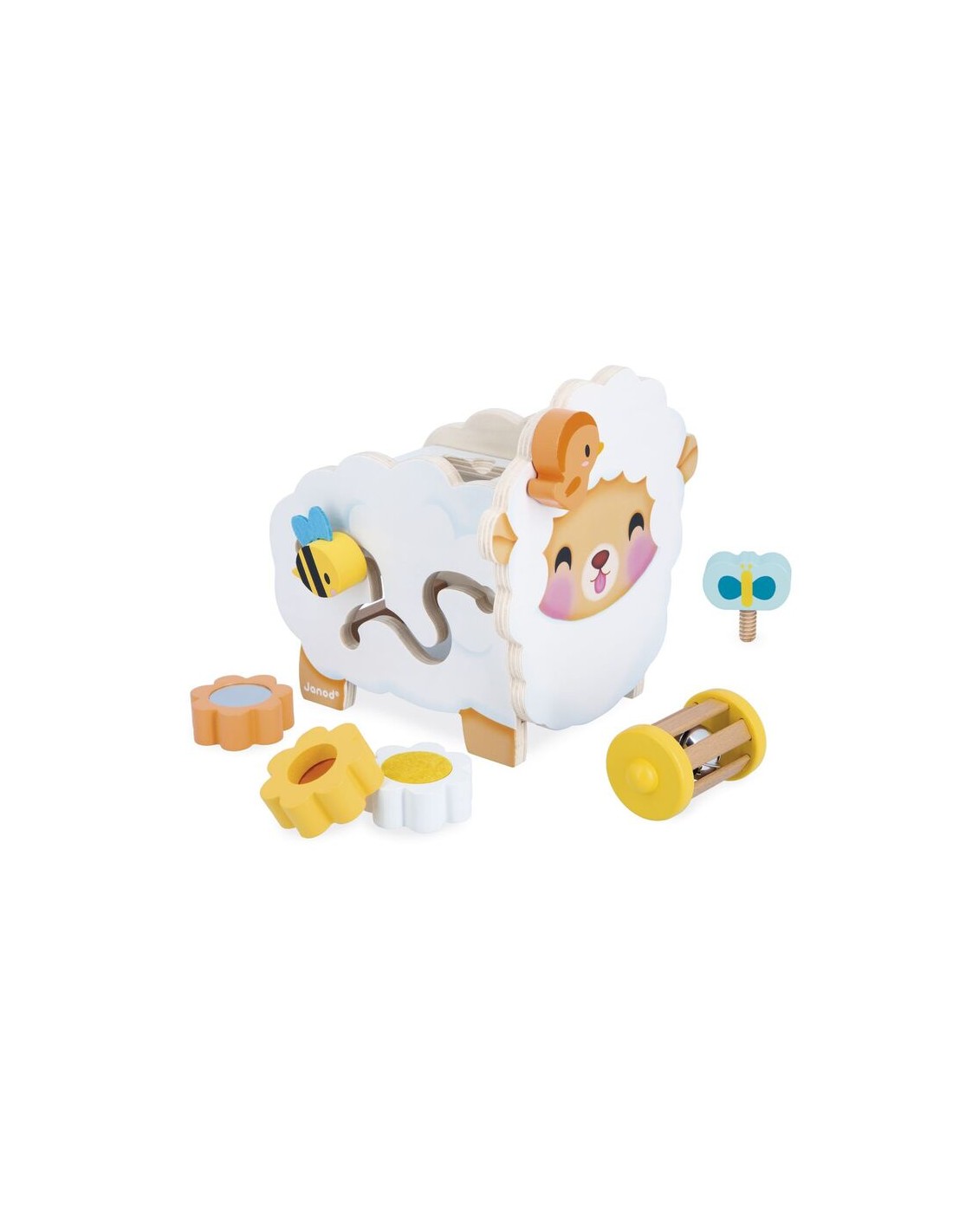 ¡Qué monada es esta oveja rústica de madera! Flores, una abeja, una mariposa… ¡toda la naturaleza está presente! Esta oveja multiactividad ofrece muchos juegos que encantarán a niños a partir de 12 meses.