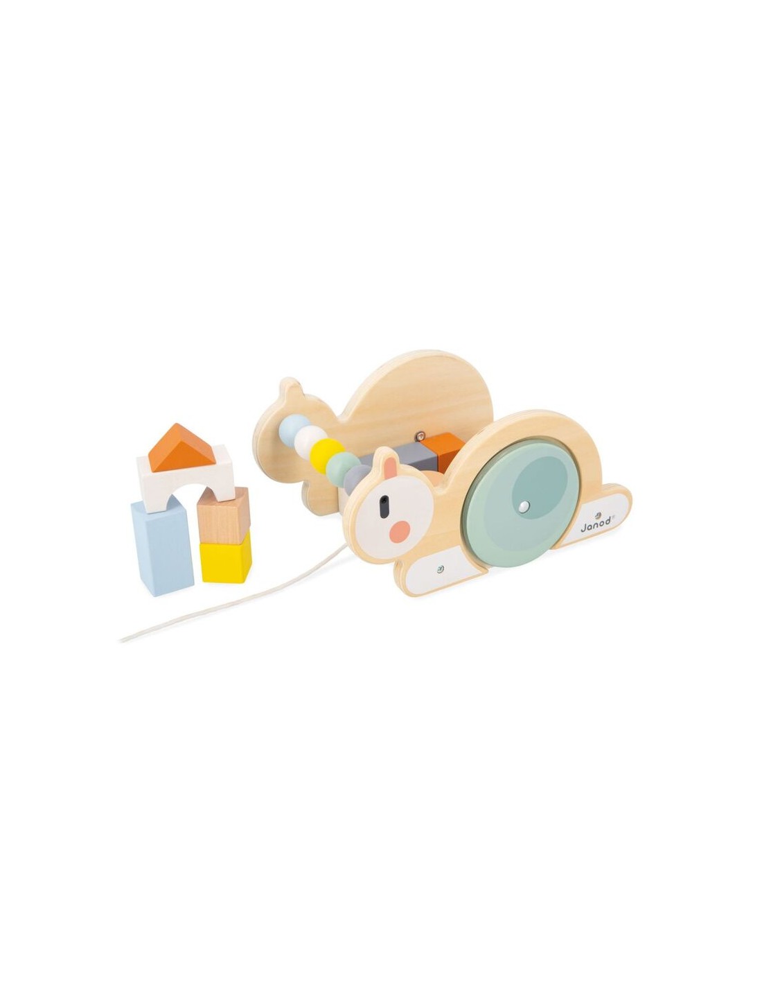Con este juguete de estímulo 2 en 1, el bebé empieza a andar y descubre los bloques a partir de 18 meses. Ideal para acompañar al pequeño en sus primeras escapadas, este juguete de paseo de madera con forma de caracol está lleno de sorpresas: el caparazón del caracol gira cuando rueda, ¡qué divertido! ¡El bebé agarra la cuerda y listo! ¡En marcha! La otra característica especial de este juguete de primera infancia son los 16 cubos de madera que incluye. ¡De diferentes formas y colores, serán el primer juego de construcción del niño!
