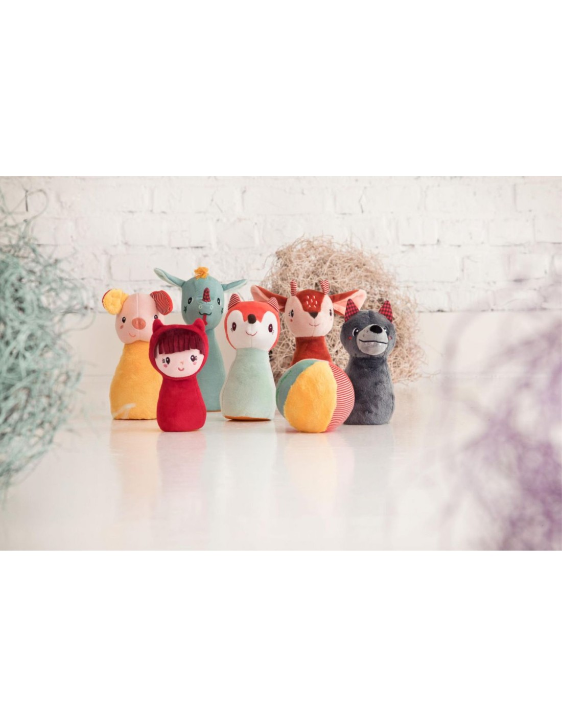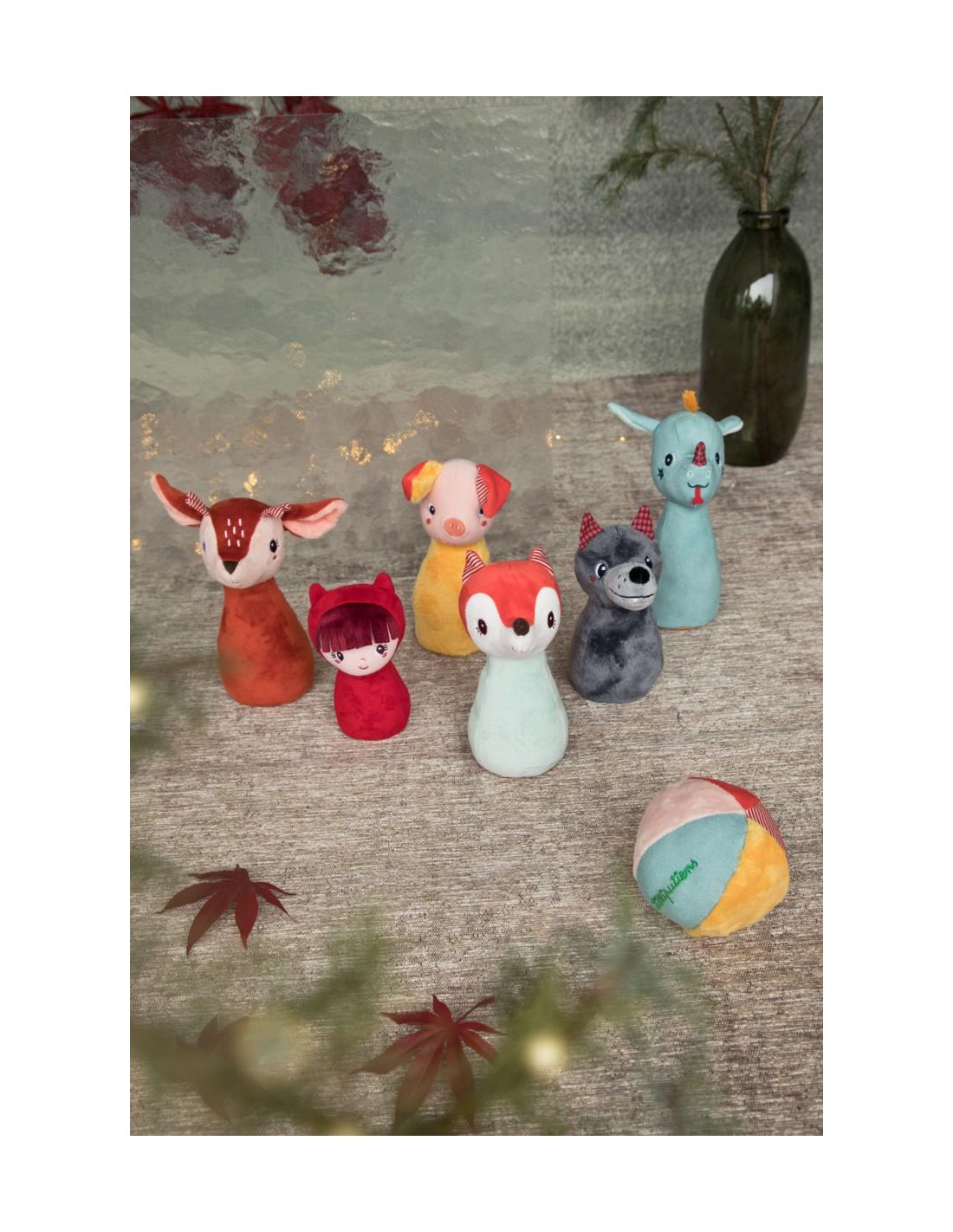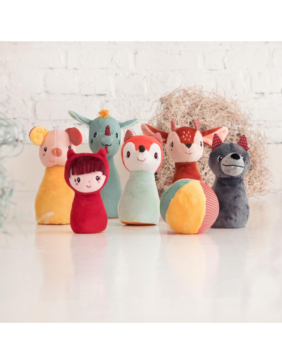 Personajes Entrañables: Incluye 6 bolos de tela que representan a los iconos de Lilliputiens: Caperucita Roja, el lobo, el cervatillo Stella, Joe y otros amigos del bosque.