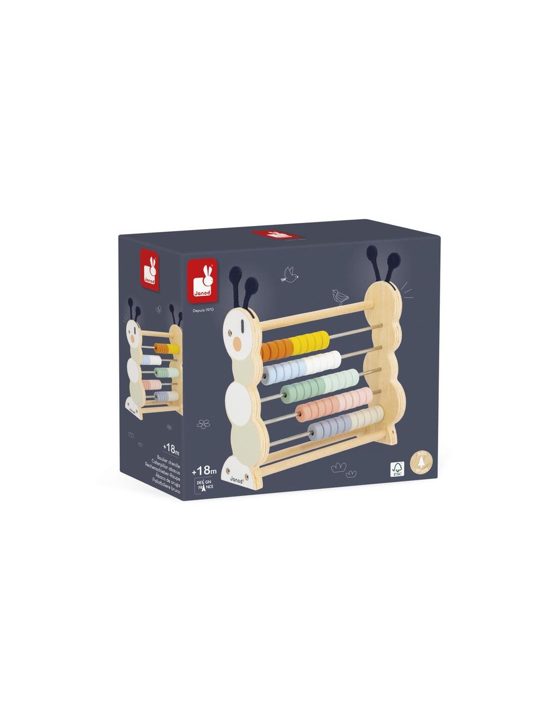 El Ábaco de Oruga de la línea Sweet Cocoon es una reinterpretación moderna y encantadora del ábaco tradicional. Diseñado por la prestigiosa marca francesa Janod, este juguete combina el aprendizaje de las matemáticas básicas con un diseño lúdico en forma de oruga que cautiva a los niños desde los 12 meses.