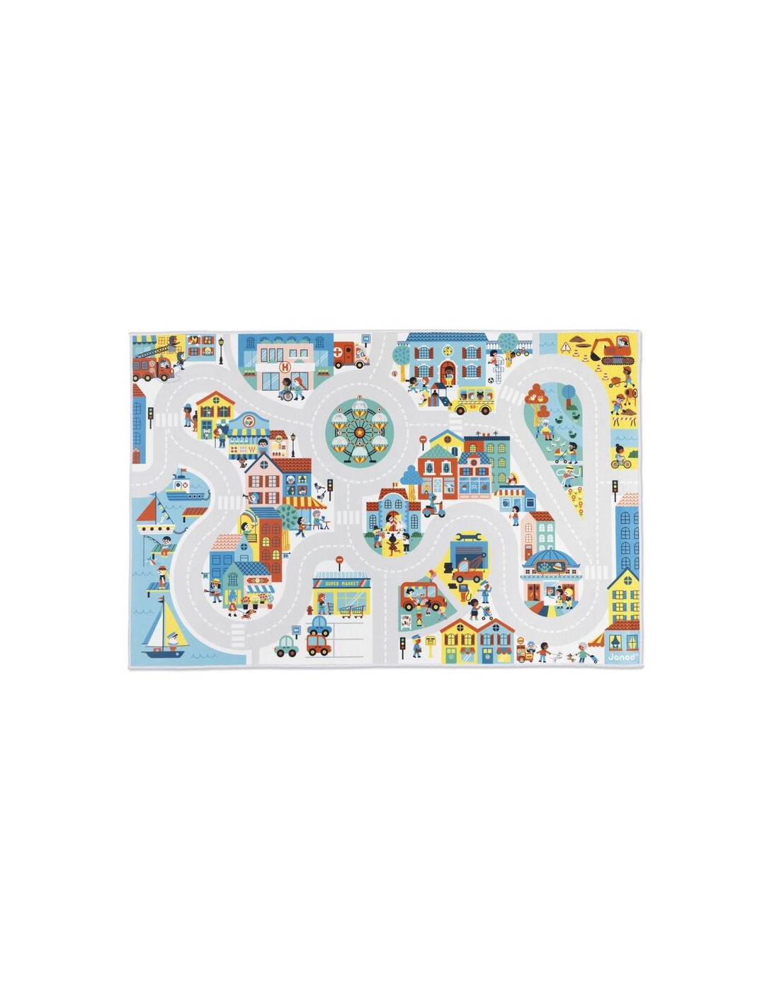Descubre la "Alfombra Ciudad - Cross Roads" de Janod, un tapete de juego vibrante y educativo que invita a los niños a explorar el mundo urbano a través del juego imaginativo. Con sus calles, edificios y cruces detallados, esta alfombra es el escenario perfecto para horas de diversión con coches y figuras.
