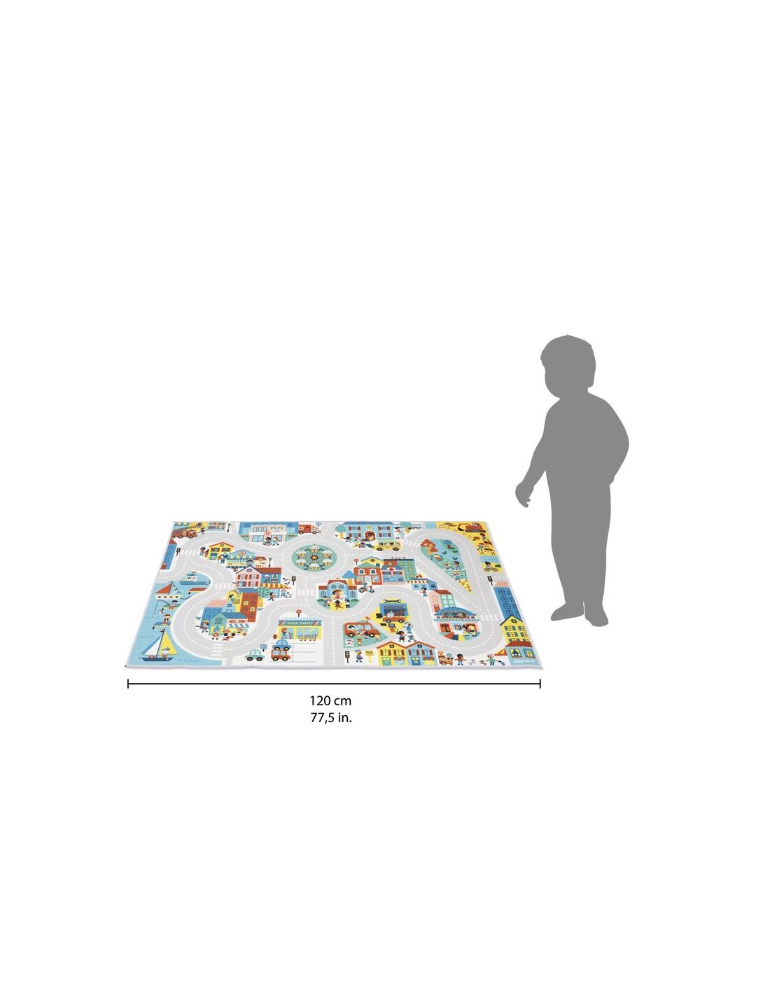 Bienvenido a la ciudad! En este colorido y animado escenario urbano, ¡cada esquina esconde una sorpresa! Esta alfombra de ciudad es adecuada para niños a partir de 2 años. Tiene una calle larga y ancha, ¡para que puedan explorar todos los barrios e imaginar un sinfín de historias! En su alfombra de juegos con circuito, los pequeños se divertirán cruzando cruces y rotondas en busca de objetos ocultos, como en un juego de buscar y encontrar. Podrán descubrir dónde está el cartero, los transeúntes que pasean a su perro o los recién casados en la explanada del ayuntamiento...