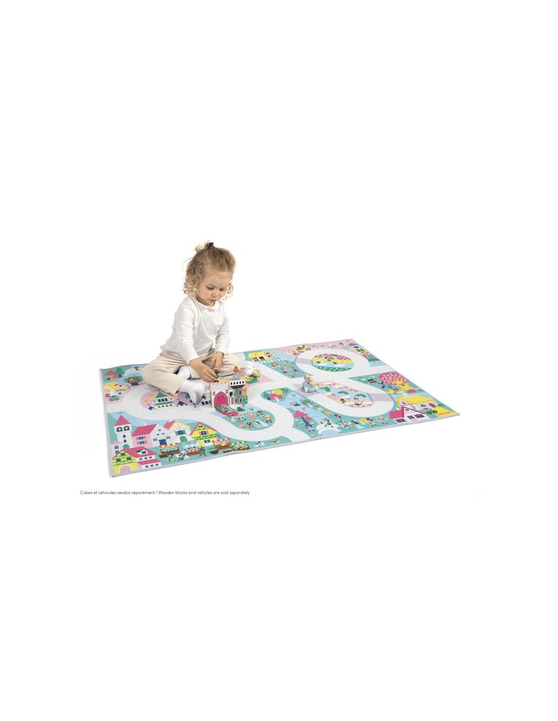 En su formato de 120 x 78 cm, esta alfombra para dormitorios infantiles ofrece otras posibilidades de juego con sus accesorios (se venden por separado): se puede completar con una gama de vehículos y bloques de madera, también de nuestra gama Cross Roads. También puedes unir esta alfombra Reino Encantado con otras alfombras de la colección para crear una zona de juego gigante y ampliar las aventuras de tus hijos. Los circuitos están diseñados para unirse por los 4 lados de la alfombra. ¿Por qué no pasar la tarde en el bosque de las hadas para terminar el día por todo lo alto?