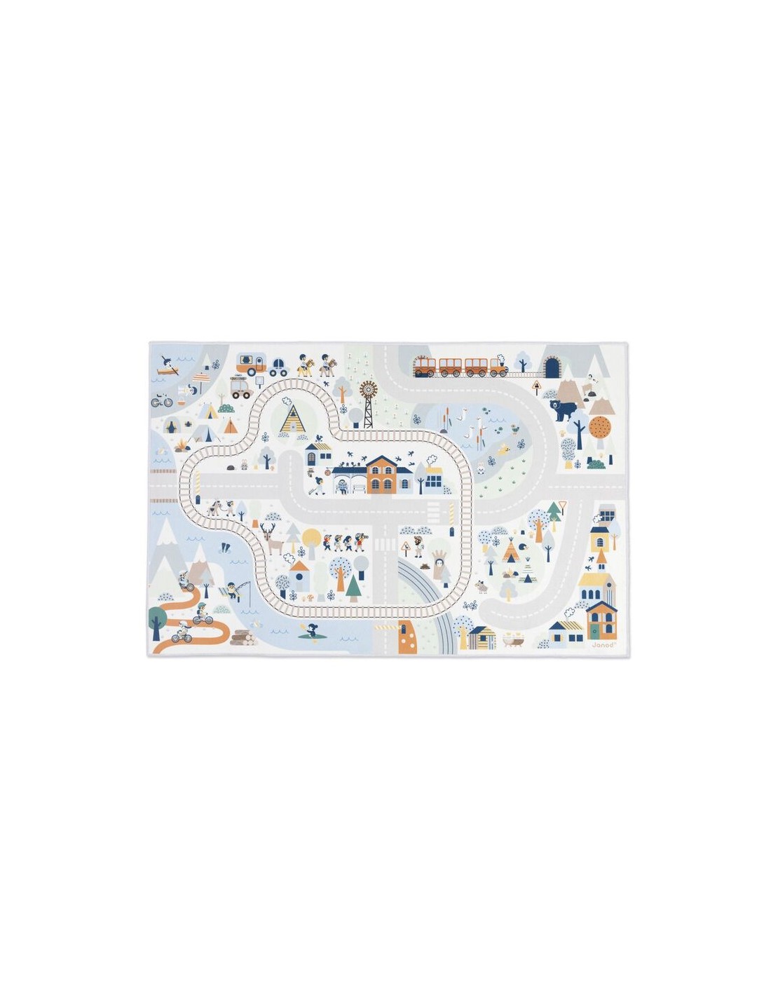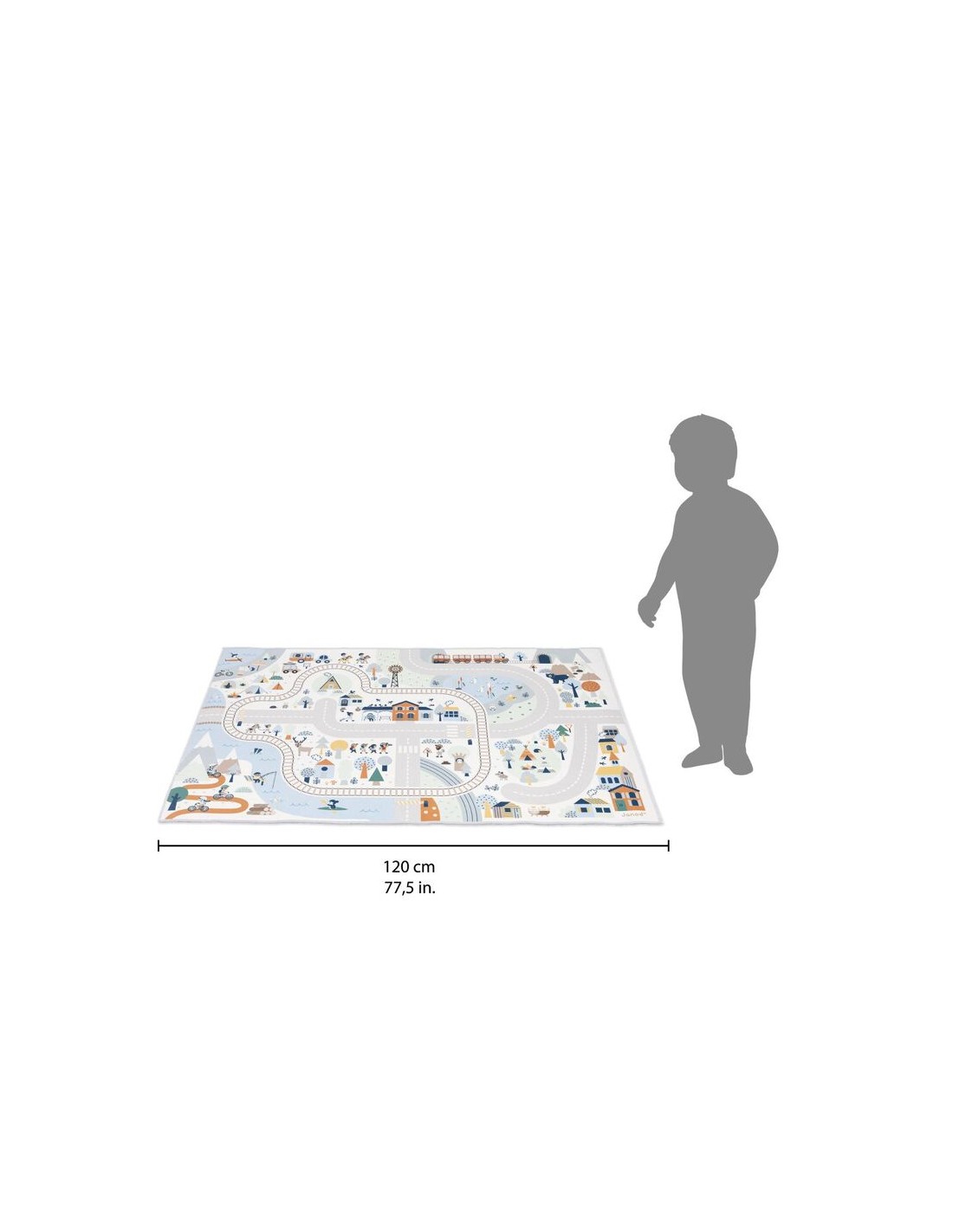 En su formato de 120 x 78 cm, esta alfombra de dormitorio infantil ofrece otras posibilidades de juego con sus accesorios (se venden por separado): se puede completar con una gama de vehículos y bloques de madera, también de nuestra gama Cross Roads. También puedes unir esta alfombra de montaña con otras alfombras de la colección para crear una zona de juego gigante y ampliar las aventuras de tus hijos. Los circuitos están diseñados para unirse por los 4 lados de la alfombrilla. ¡Tomemos el tren nocturno!