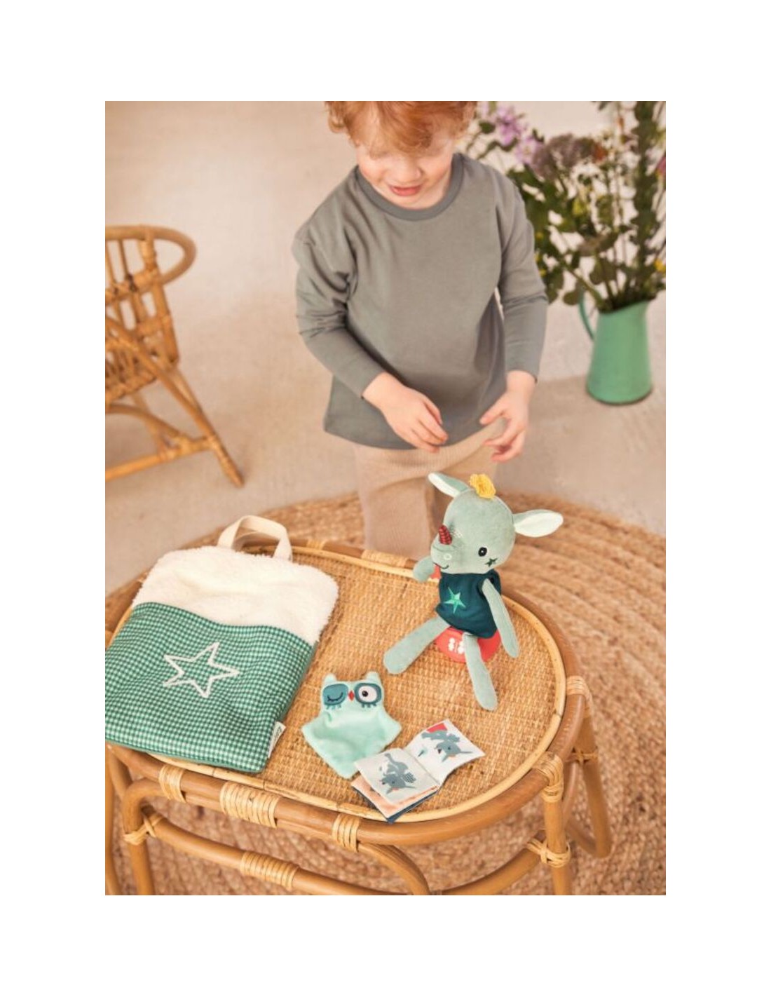 ¡Ya es hora de irse a dormir! Puedes ayudar a Joe el dragón para que se prepare a ir a la cama? Usa el orinal, se pone el pijama, se coloca el pañal y después se instala cómodamente junto con su peluche en su mullida camita. Después del cuento de noche, apaga la lámpara y cierra los ojitos. La estrella fosforescente colocada en su camita sirve de luz quitamiedos para que se sienta tranquilo. Experimenta la rutina nocturna de forma lúdica con Stella. Un conjunto que aporta serenidad y estructura al ritual.