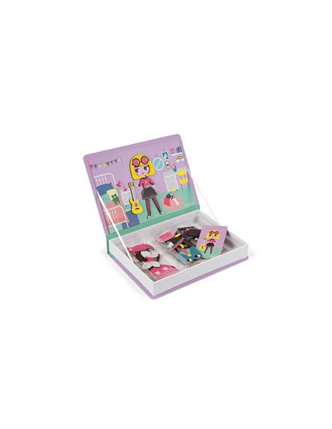 Magnetibook disfraces chica es un juego educativo magnético de cartón con la temática de los disfraces para niñas. Compuesto por 46 imanes y 8 tarjetas. Una vez se ha abierto el libro, el objetivo del juego es recomponer en la escena el disfraz que indica la tarjeta con ayuda de los imanes.
