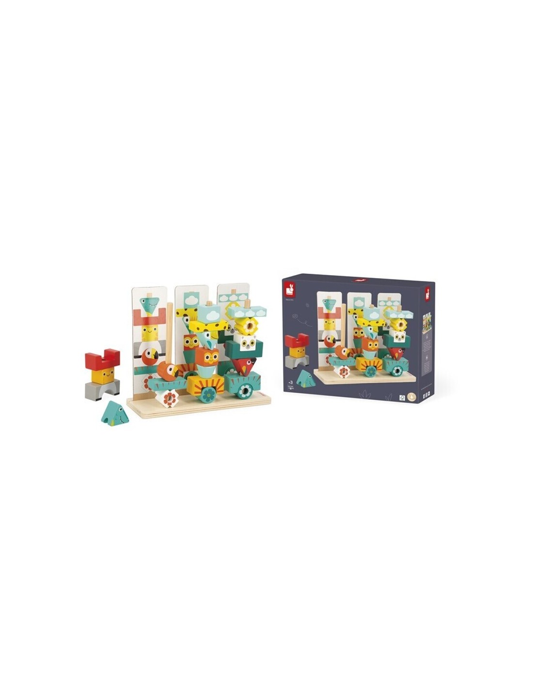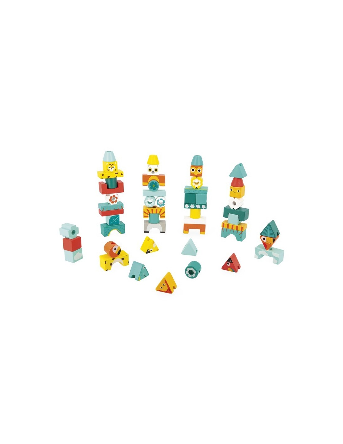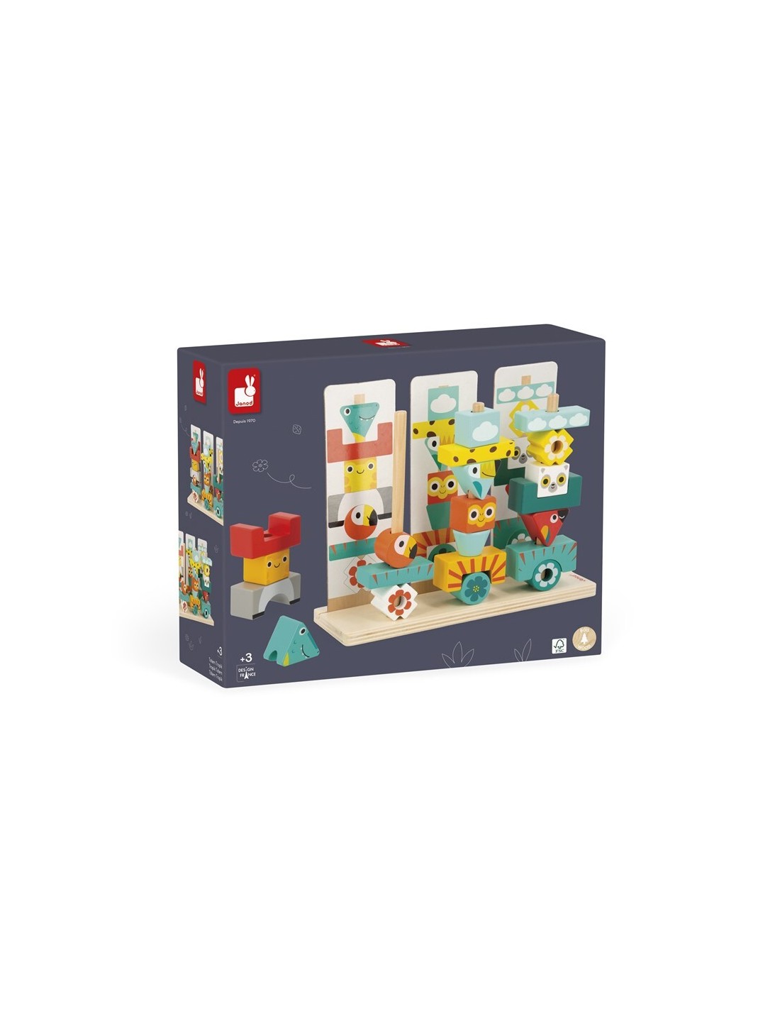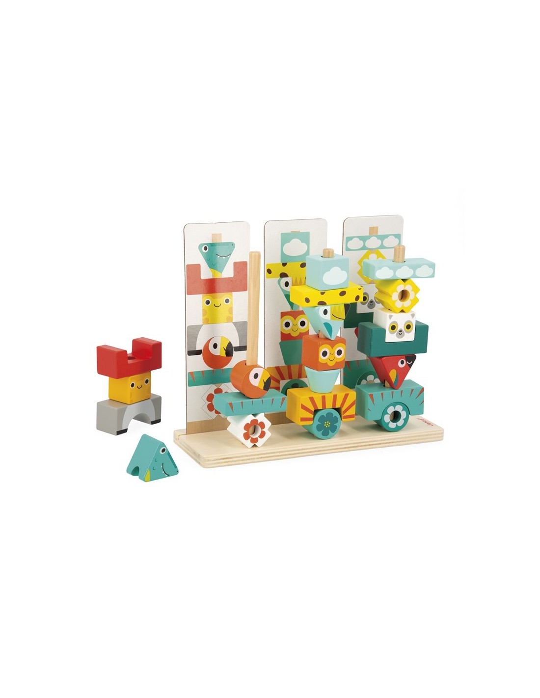 Tótem Tropik de Janod es un juego educativo con 52 piezas de madera y 6 tarjetas reversibles con el que los peques a partir de 3 años podrán crear divertidos tótems de colores. Se trata de un juego educativo que estimulará la observación, la orientación espacial y la motricidad fina a la vez que se divierten ensartando cada pieza en la posición y el orden correcto que indica cada tarjeta, o bien podrán apilar y jugar libremente con las piezas creando preciosas construcciones.
