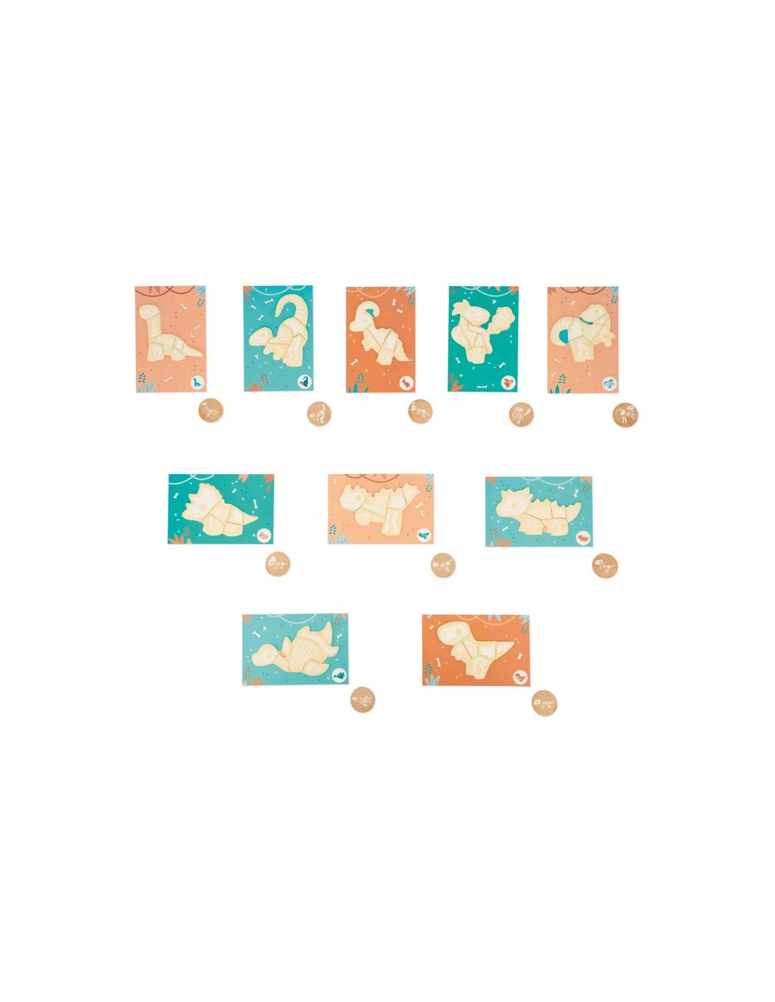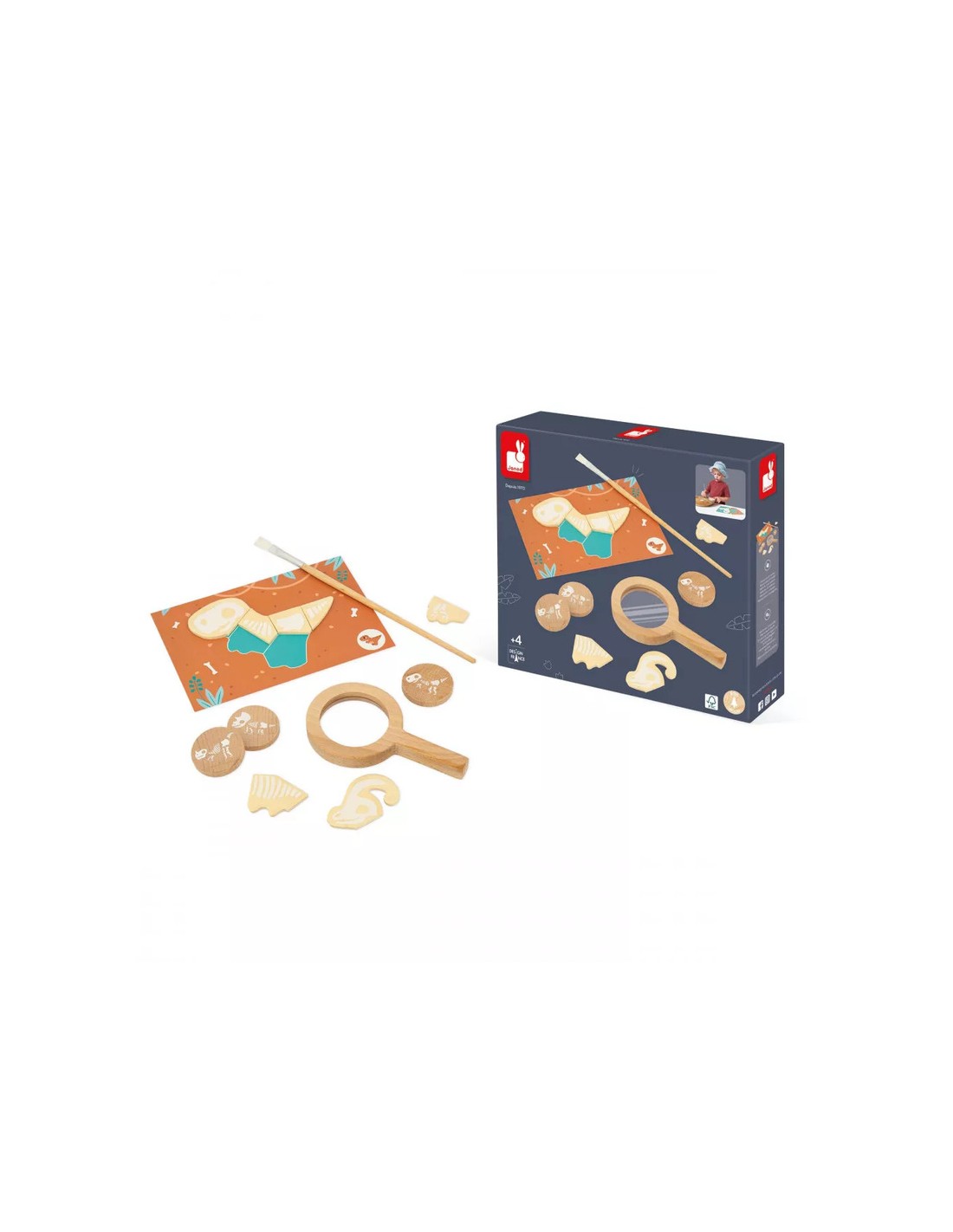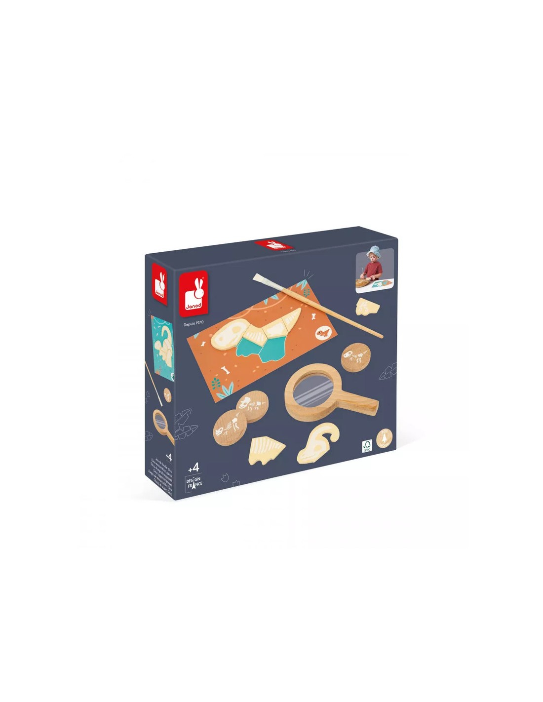 ¿Quién no ha soñado alguna vez con ser paleontólogo y hacer grandes descubrimientos? ¡Con este juego de excavaciones los niños a partir de 4 años se pondrán en la piel de los mejores investigadores y jugarán a encontrar los rastros de los huesos de dinosaurio! Esta actividad lúdica consiste en divertirse encontrando, entre los 64 huesos, los que forman parte de la tarjeta del enigma: ¡hay 10 esqueletos de dinosaurio que reconstruir en este juego de fósiles! ¡Cada enigma tiene su propia carta de respuesta para comprobar si las intuiciones de los pequeños estudiosos del Jurásico son correctas! Para reproducir las condiciones de una auténtica excavación, el juego incluye arena y una lupa. ¡Solo falta un poco de concentración y observación para llegar hasta el final y resolver el misterio! En las bonitas tarjetas de los enigmas, hechas de cartón FSC®, hay una pista visual sobre el dinosaurio en cuestión, ¡pero en carne y hueso!