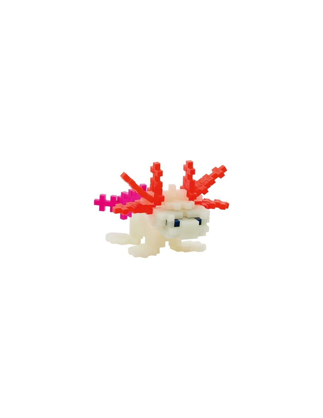 Sumérgete en las profundas aguas para conocer aldivertido Ajolote, 100 piezas que brillan en la oscuridad para hacer volar tu imaginación. Incluye una guía de montaje, aunque no hay limite a lo que puedes crear.