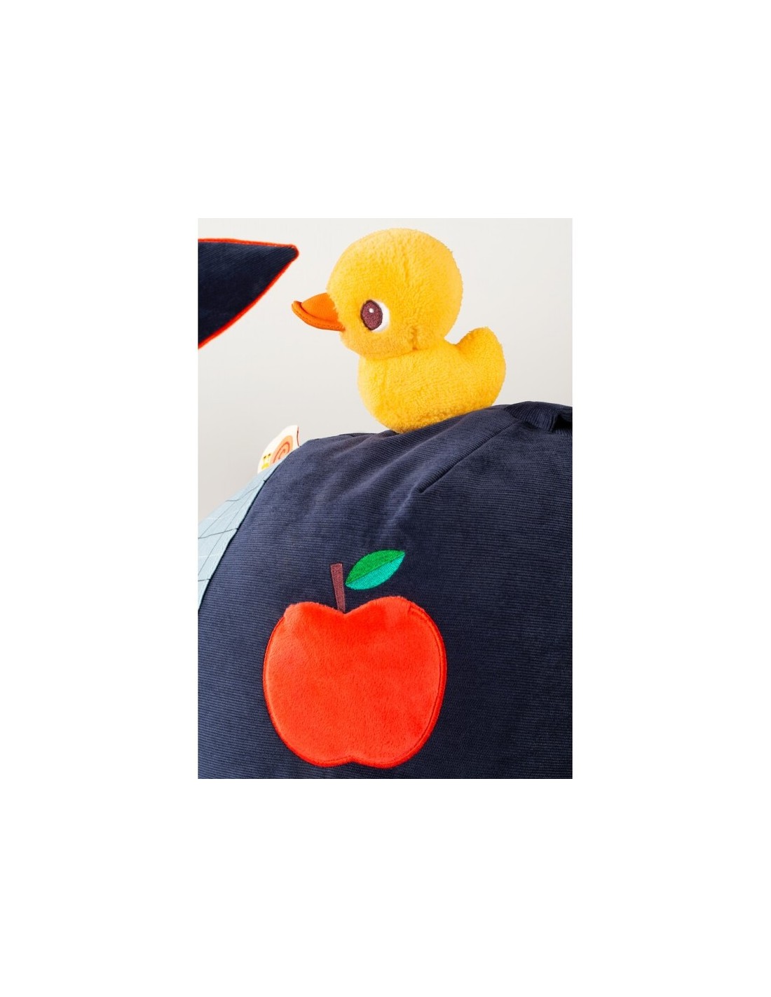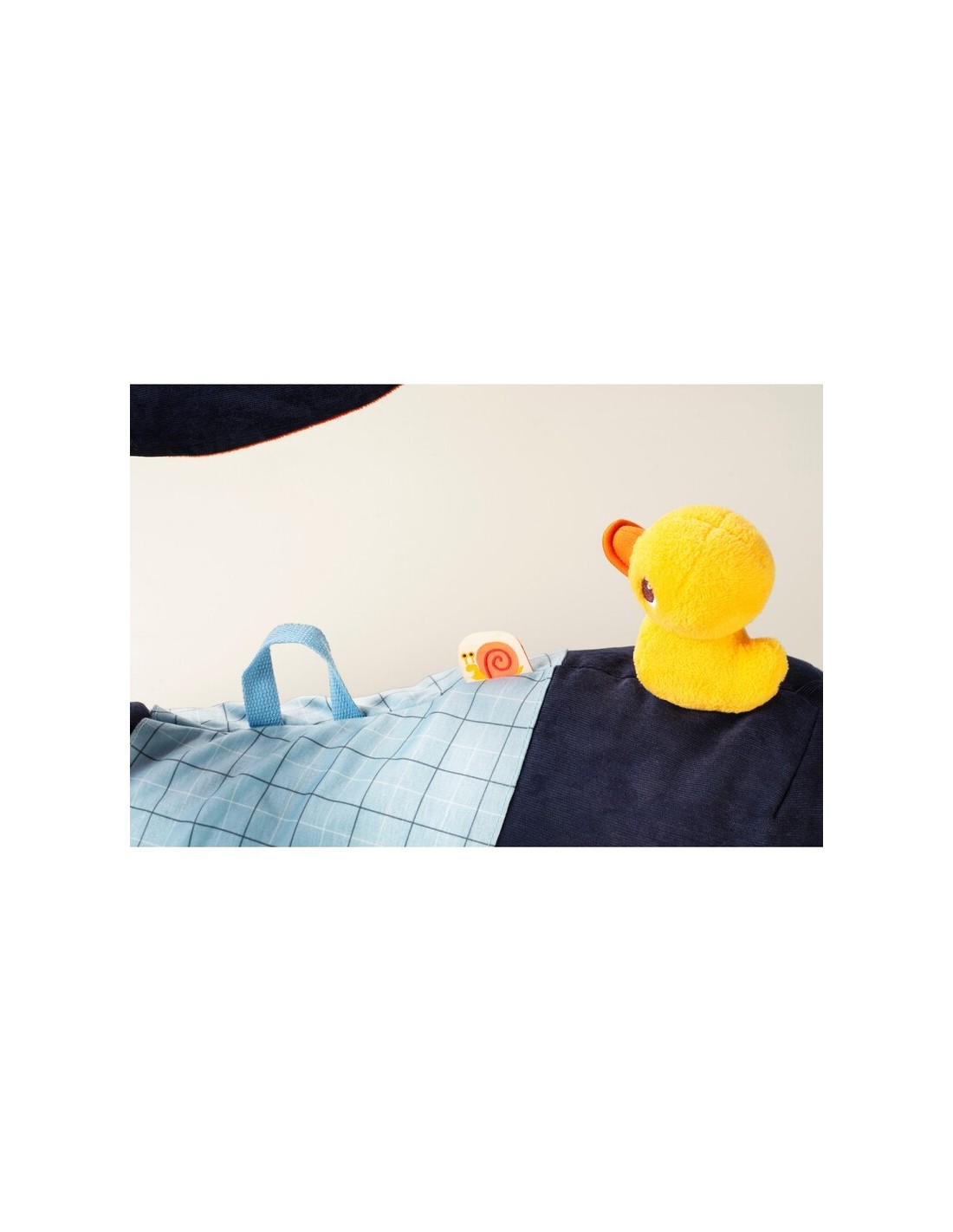 Bolsillo secreto: Su gran boca sirve como escondite para guardar el pijama o pequeños tesoros, fomentando el juego simbólico y la autonomía.