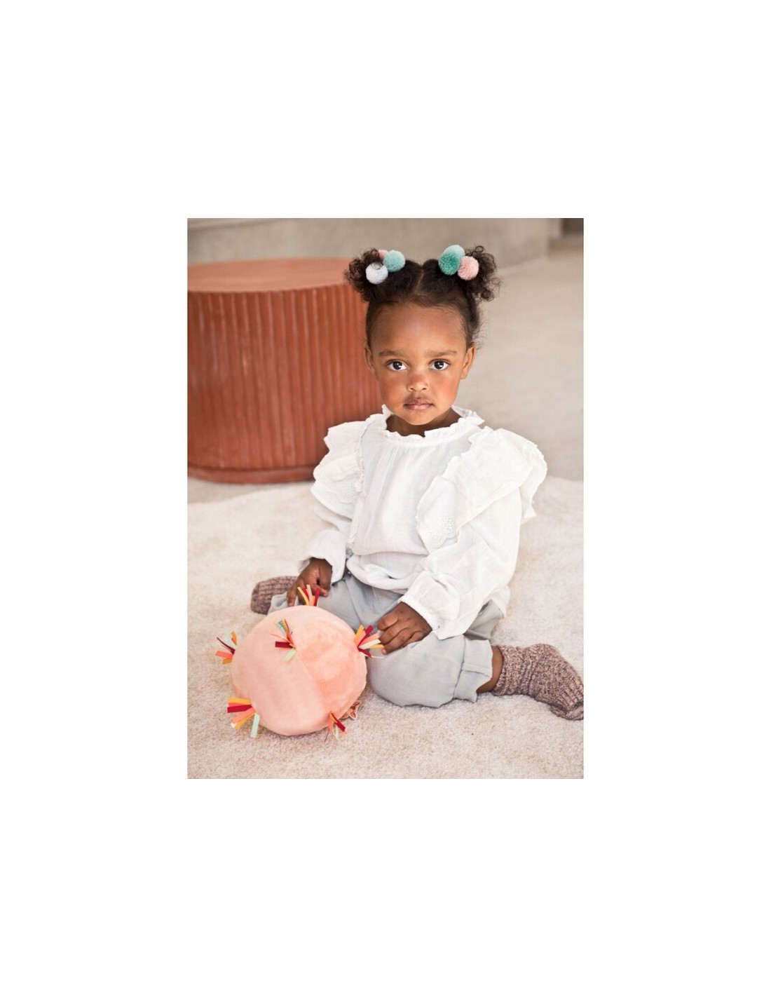 Igual que la chispeante y dinámica Stella la cervatilla, esta bola de actividades musical parece recién salida de un número de pompom girls. Con sus múltiples sonidos, su suavidad y sus alegres colores, ¡los bebés no se separarán de ella! Esta pelota sensorial rosa de tela supersuave, con una divertida Stella la cervatilla en lo alto, lleva unas cintas multicolores pensadas para estimular la motricidad fina. La bola lleva dentro un caja musical con 7 sonidos diferentes que estimula el sentido del oído. Con el botón de la caja, se puede decidir activar o no los sonidos en todo momento.