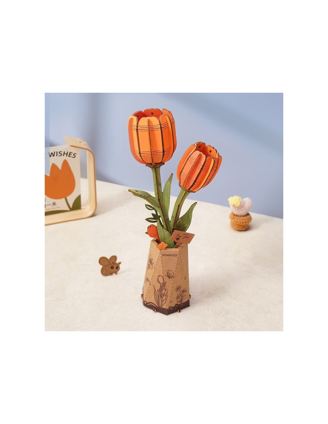 Expresa tus sentimientos con Orange Tulip, una flor de madera para montar que combina arte, decoración y creatividad. Este puzzle 3D DIY incluye piezas precortadas y precoloreadas que se ensamblan fácilmente sin necesidad de pegamento. Ideal como regalo simbólico, decoración de interiores o actividad relajante para niños y adultos.
