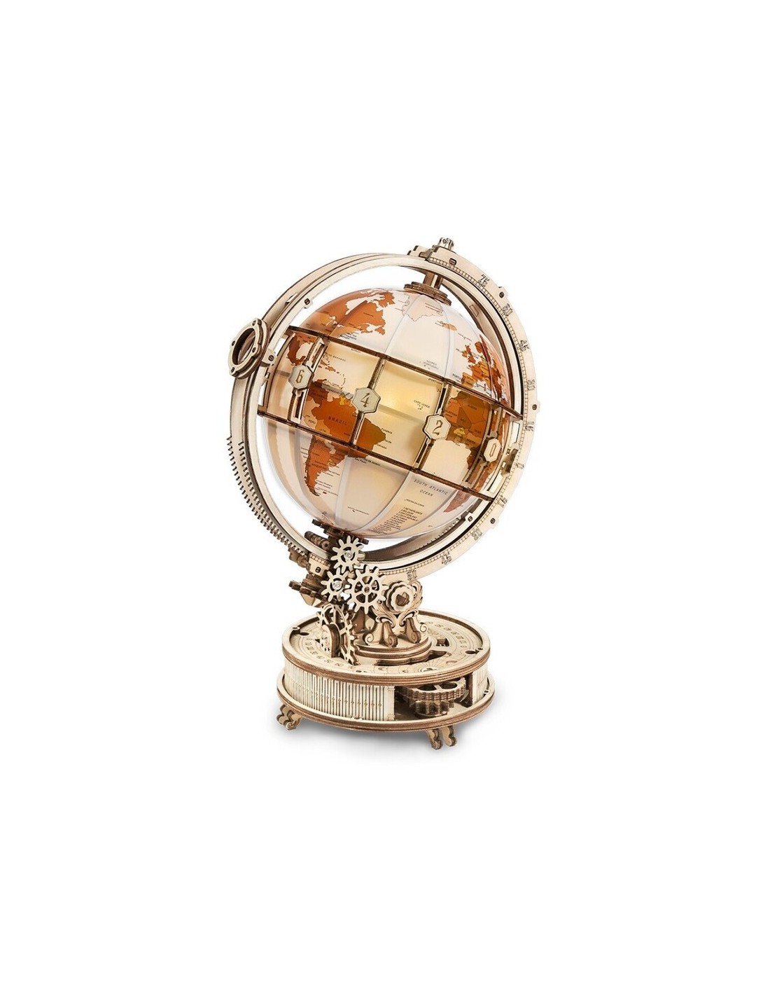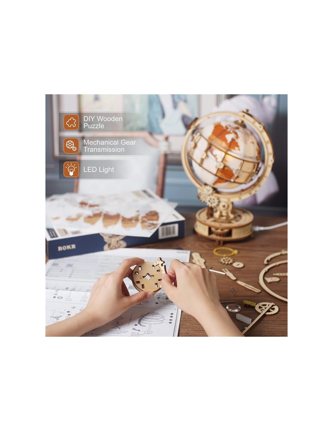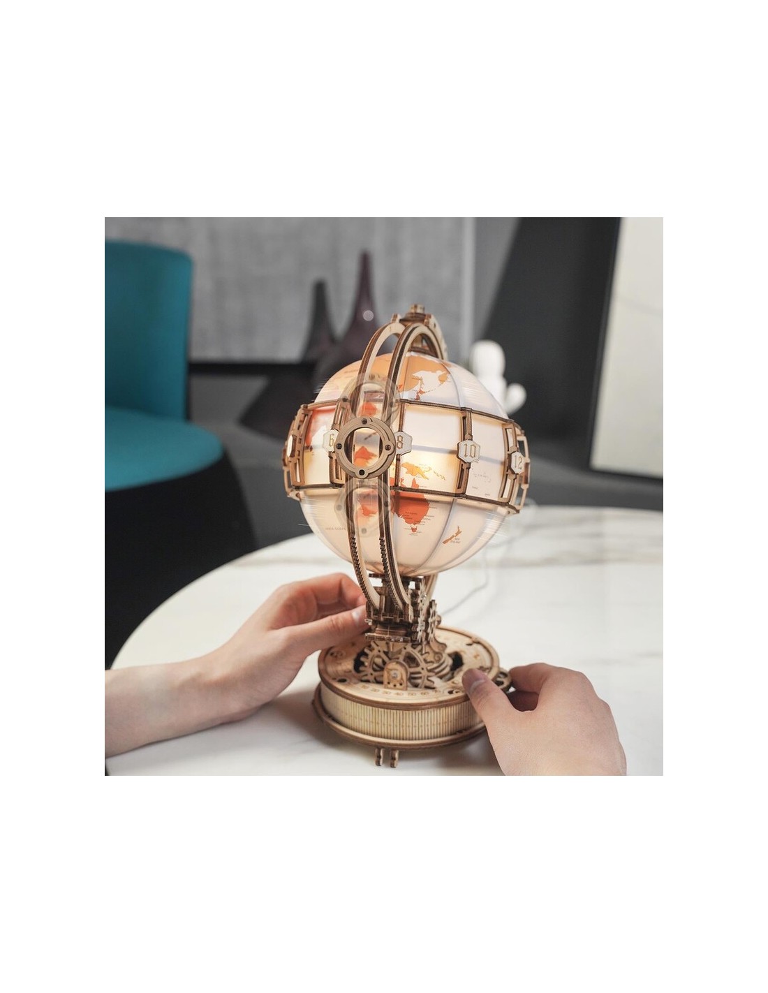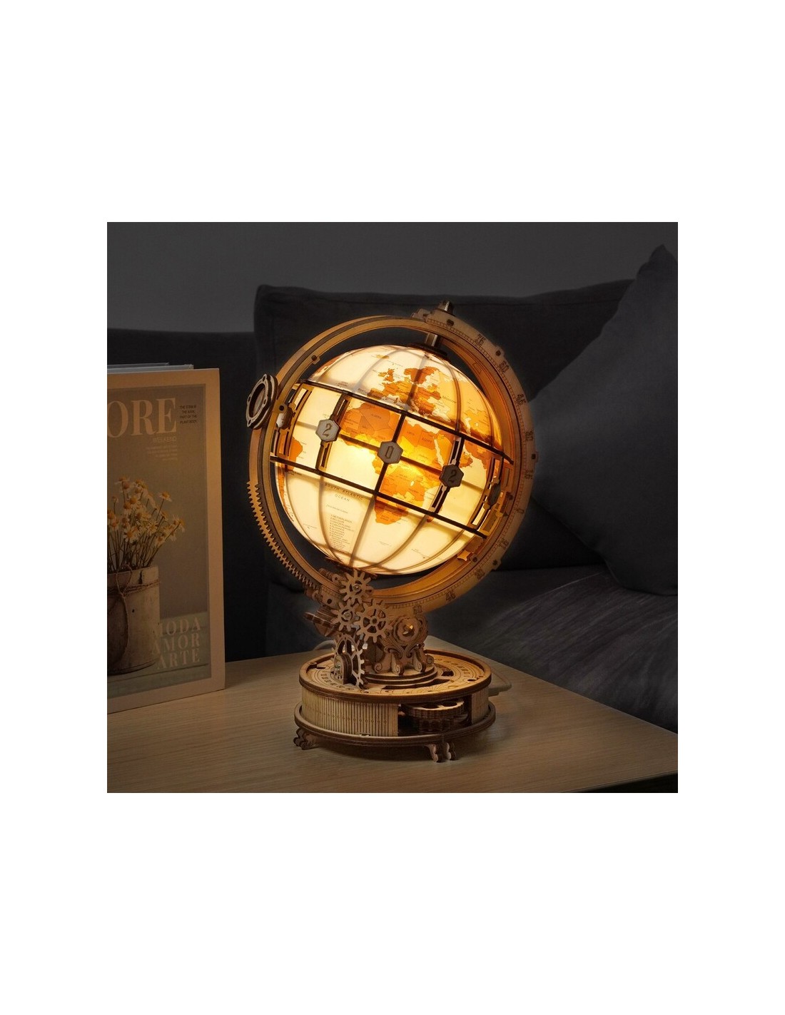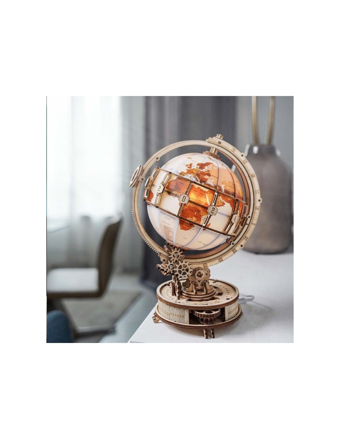 Descubre el mundo desde tu escritorio con LUMINOUS GLOBE, una maqueta DIY en madera que recrea un globo terráqueo giratorio con iluminación LED. Su diseño vintage y mecánico lo convierte en una pieza decorativa única, ideal para amantes de la geografía, el bricolaje y la estética steampunk.