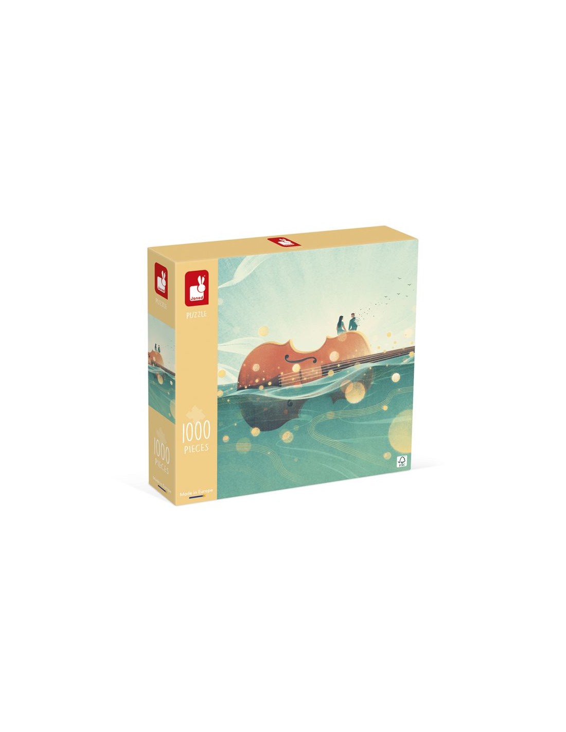 ¿Te apetece un momento de paz para ti o con tu familia? ¿Por qué no escaparse al mar abierto con este puzle de cartón de 1000 piezas, que te transportará a un universo poético? Sueña en este paisaje, donde el azul del cielo y del océano acoge un majestuoso violín en donde se pasea, como en un barco, una enigmática pareja. Déjate arrullar por la musicalidad de las olas y el romanticismo de la escena.