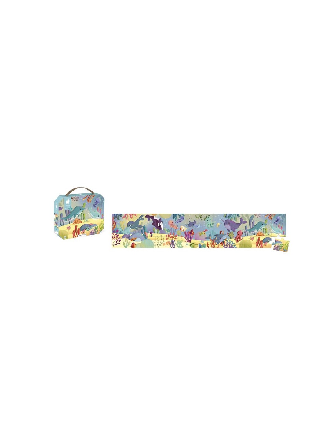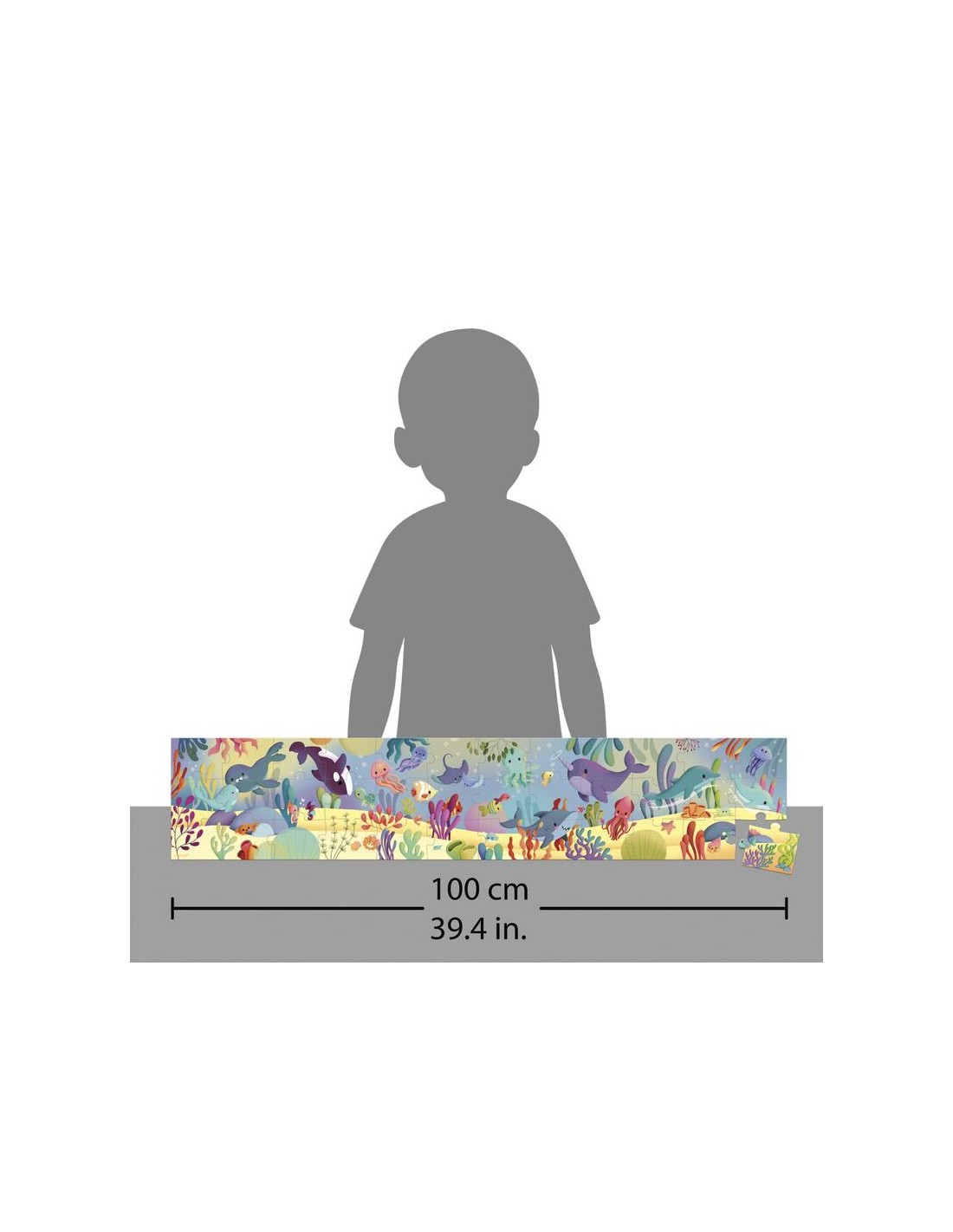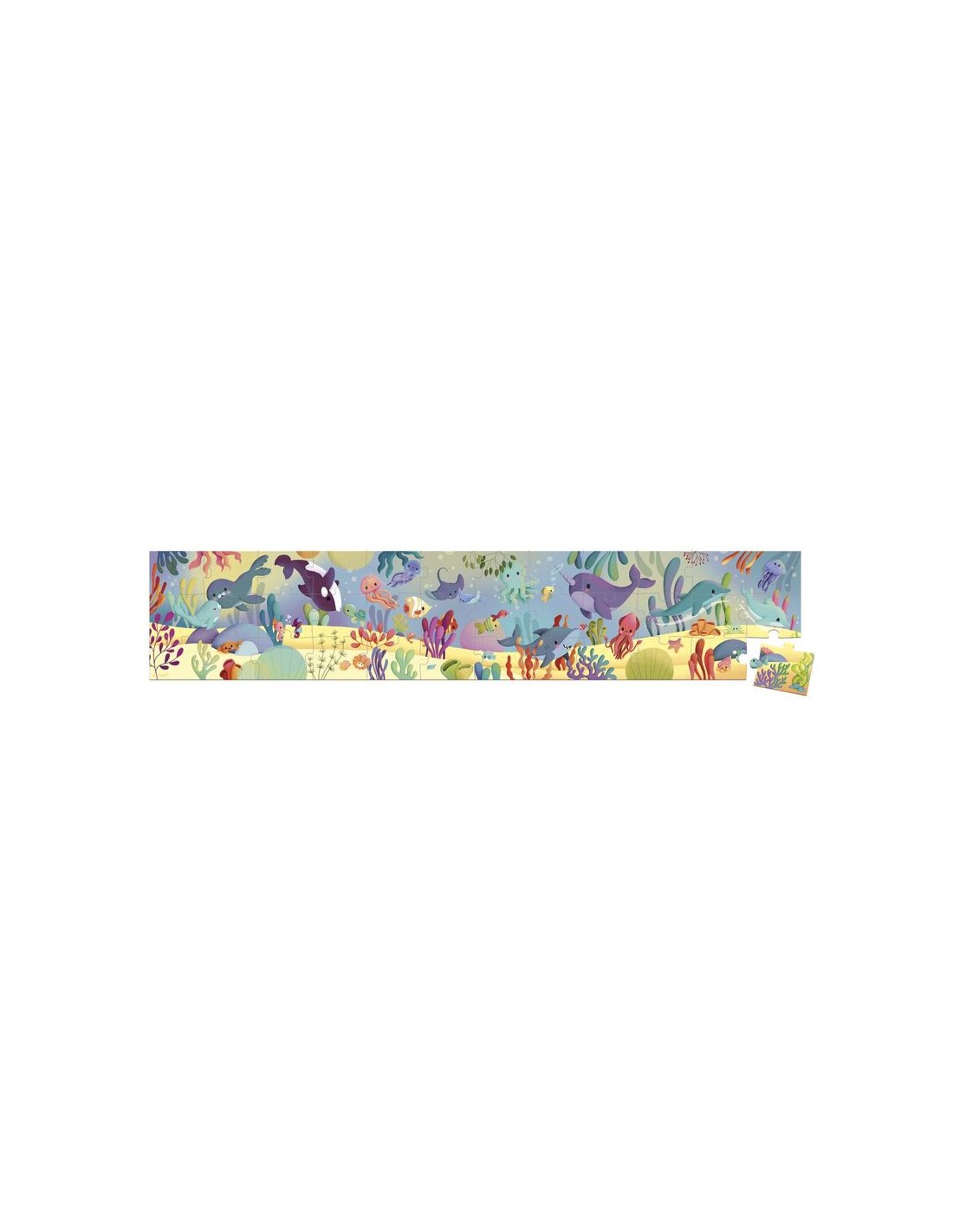 ¡Descubre las profundidades del océano! Sumérgete en busca de los animales marinos con este friso ilustrado de 36 piezas sobre el tema de las criaturas marinas, adecuado para niños a partir de 4 años. Este puzzle panorámico de 100 x 20 cm ofrece una inmersión total en las profundidades del mar. Las piezas se adaptan perfectamente a las pequeñas manos de los niños de 4 años, ayudándoles a desarrollar su motricidad fina y su lógica. Este puzzle marino también es ideal para estimular la concentración y la paciencia.