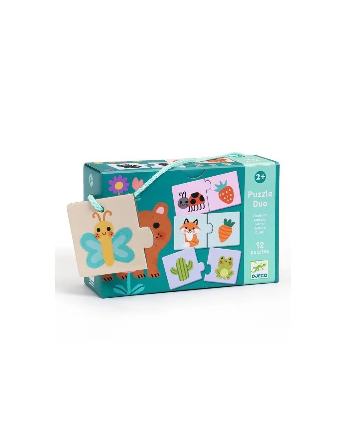 Puzzle duo Colores de Djeco es un primer puzzle de asociación a partir de 2 años. Se trata de 12 puzzles de 2 piezas cada uno que el peque tendrá que recomponer. Ideal para desarrollar la motricidad y el pensamiento lógico en los más pequeños y el aprendizaje de los colores. La caja tiene un cordón que sirve de asa para fácil transporte.