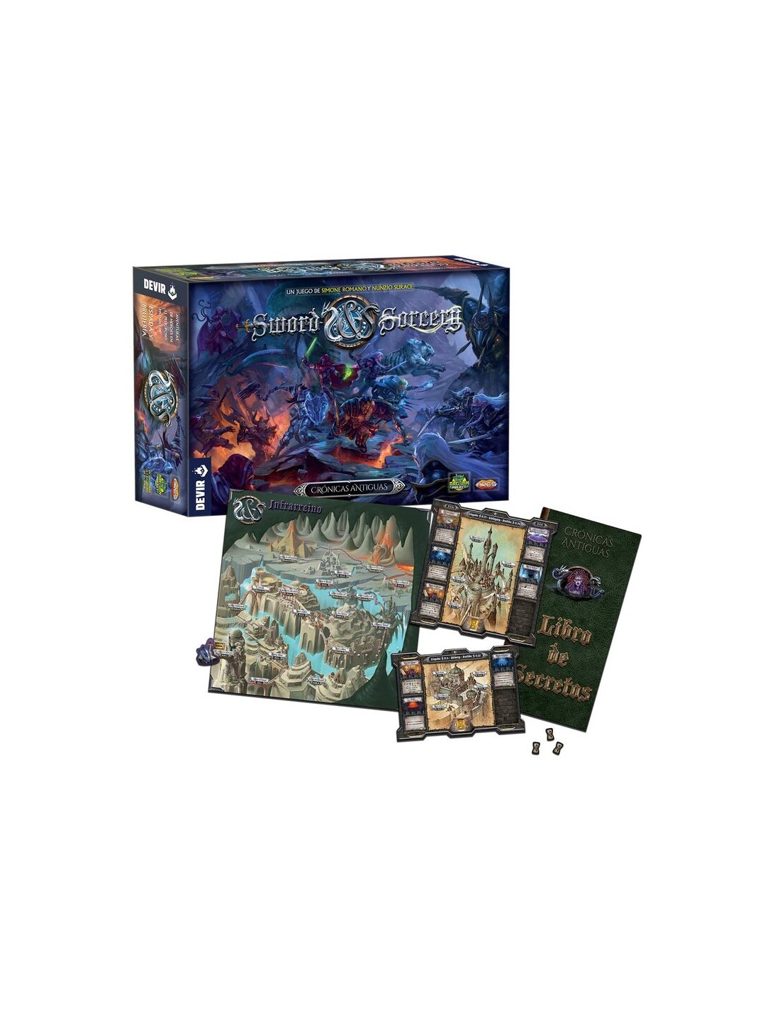 Sowrd & Sorcery Crónicas Antiguas es una nueva aventura de Sword & Sorcery. Se trata de un juego independiente pero compatible con el resto de juegos de Sword & Sorcery en el que aparecen nuevos monstruos nunca vistos. La saga Sword & Sorcery es un clásico de los juegos tipo dungeon crawler, juegos en los que tendremos que recorrer escenarios enfrentandonos a enemigos, recogiendo objetos y luchando codo con codo con nuestro compañeros para derrotar al enemigo común.