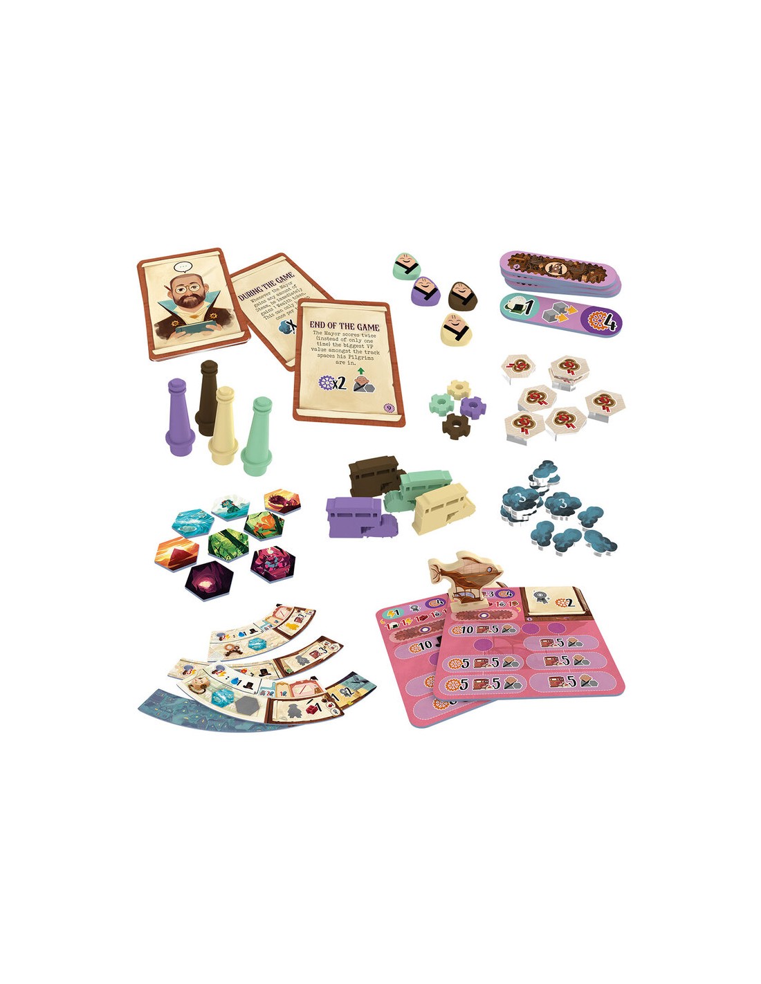 Estas acciones no sólo te ayudarán en tu búsqueda de reconocimiento (o lo que es lo mismo, sumar puntos de victoria para ganar), sino que ayudarán a todos los habitantes de la gran ciudad. Incluso puedes contribuir a construir un gigantesco proyecto, la megamáquina. Es posible que algunos bosques sean talados y algunos ríos se sequen, pero en tu generosidad ayudarás a los trabajadores desplazados de esas áreas brindándoles nuevos trabajos a tu servicio.