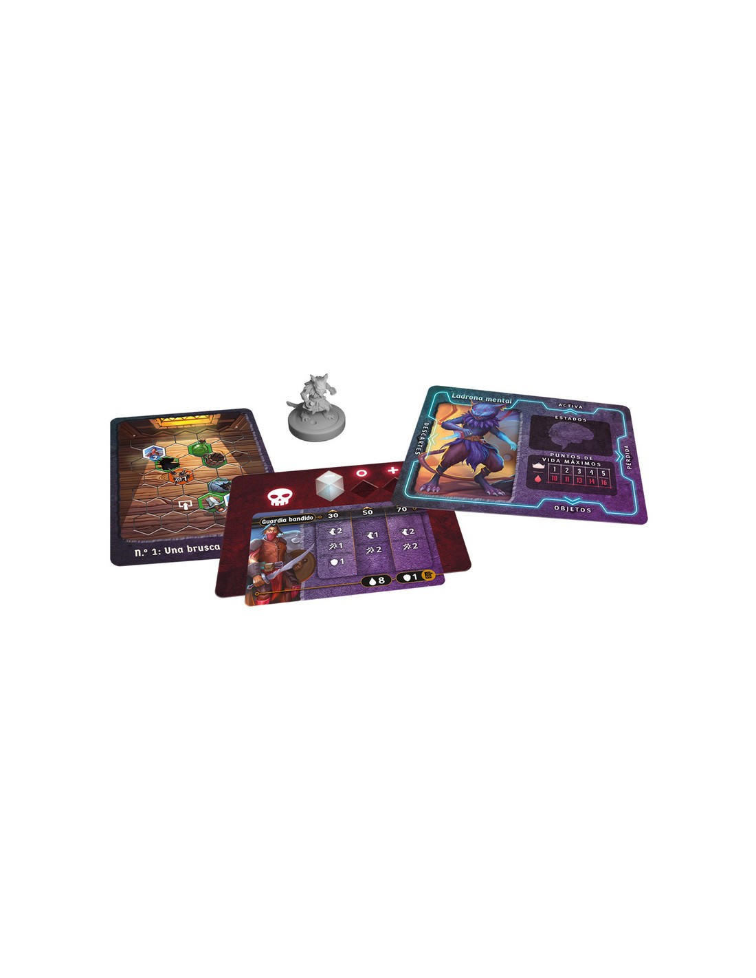 Contenido Sorprendente en Miniatura: A pesar de su tamaño compacto, incluye 6 mercenarios diferentes (cada uno con su microminiatura y cartas de capacidad), fichas de estado y 20 enemigos distintos en cartas de atributos de monstruo.