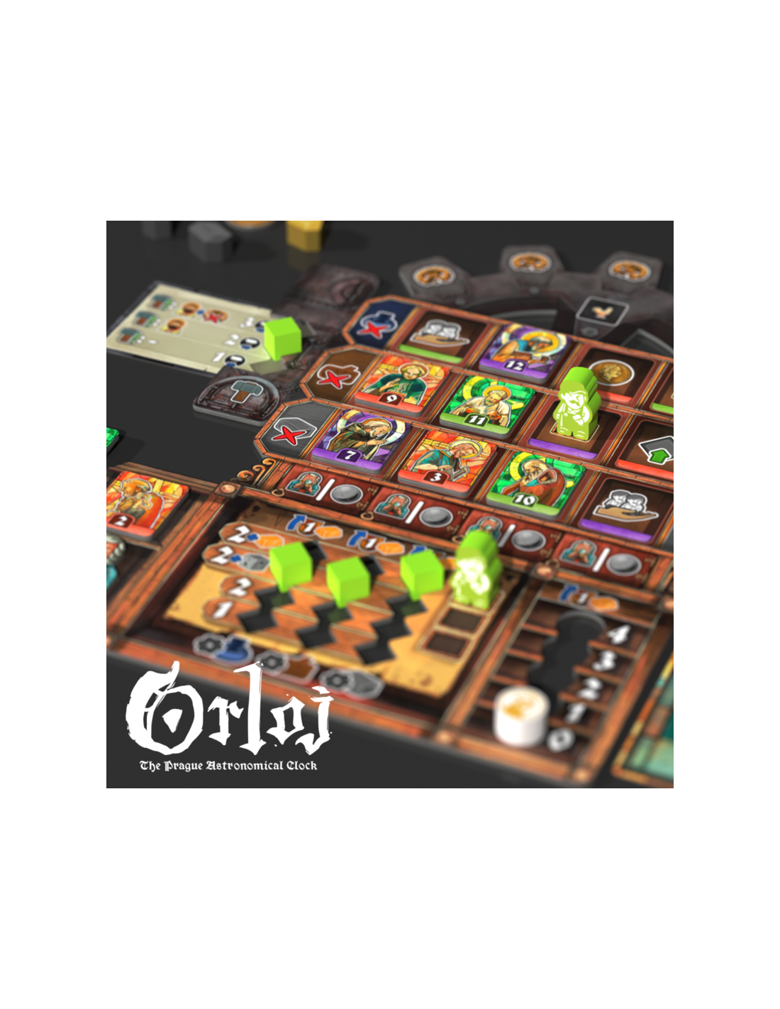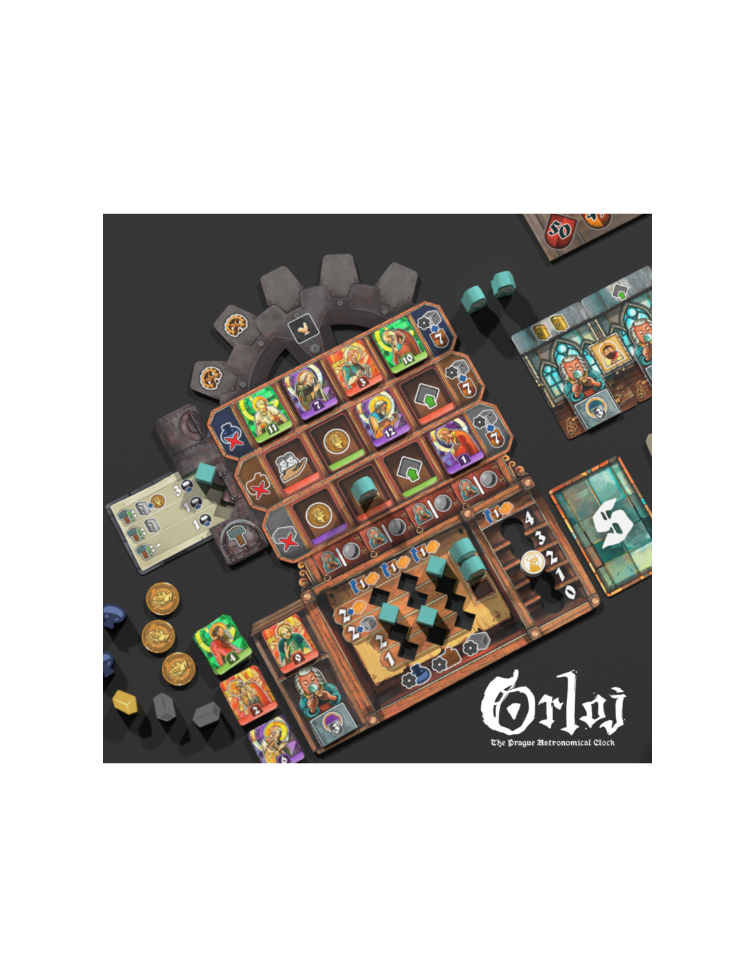 ORLOJ: THE PRAGUE ASTRONOMICAL CLOCK es un juego de mesa eurogame de estrategia de peso medio-alto para 1 a 4 jugadores con una duración de 60 a 120 minutos. Publicado por Perro Loko Games, el juego te transporta a Praga en 1865 para ser uno de los artesanos encargados de embellecer el legendario Reloj Astronómico, el Orloj.Su mayor atractivo y lo que lo convierte en un juego único es su mecánica central innovadora que simula el funcionamiento del reloj con un sistema de rondel y engranajes giratorios.