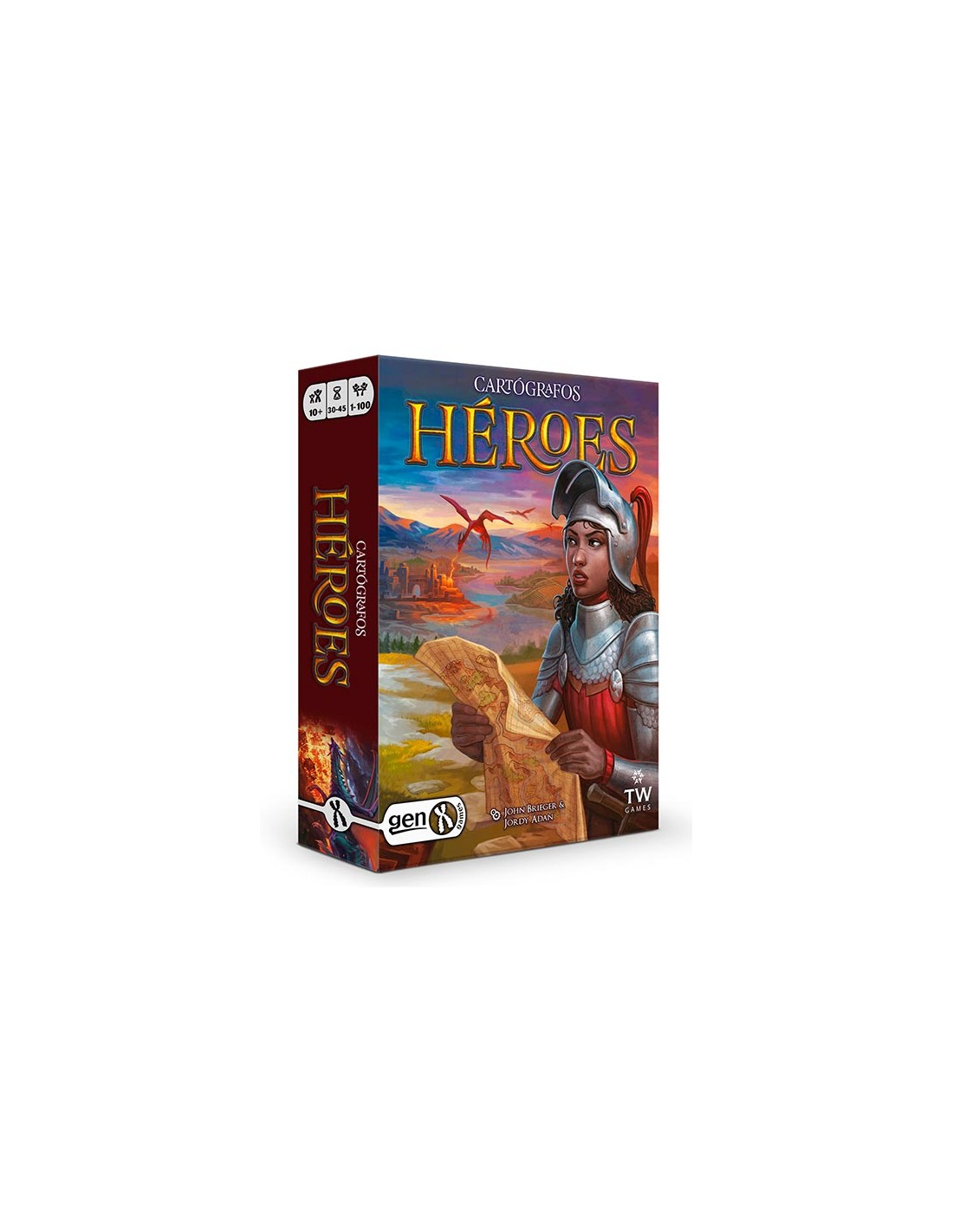 Cartografos Héroes es la secuela del juego de dibujo de mapas aclamado por la crítica, Cartógrafos. Incluye nuevas y diferentes hojas de mapas, cartas de puntuación, cartas de exploración y cartas de emboscada con habilidades únicas. Cartógrafos Héroes puede jugarse por si solo o mezclado con los componentes del juego original para conseguir una experiencia de juego mucho más amplia.