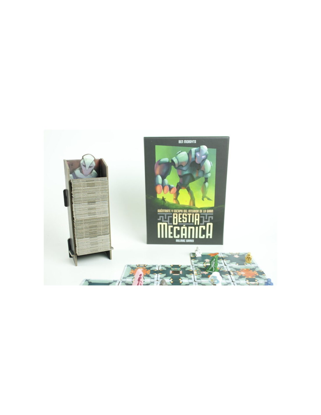 Bestia Mecánica es un emocionante juego de mesa de Melmac Games para 1 a 4 jugadores que combina la colocación y manipulación de losetas con una temática de ciencia ficción y escape. Los jugadores asumen el papel de un equipo de ingenieros que deben infiltrarse en el interior de un gigantesco robot para encontrar la sala de control y desactivarlo. Una vez desactivado, las salas colapsarán y deberán salir lo antes posible antes de quedarse atrapados.