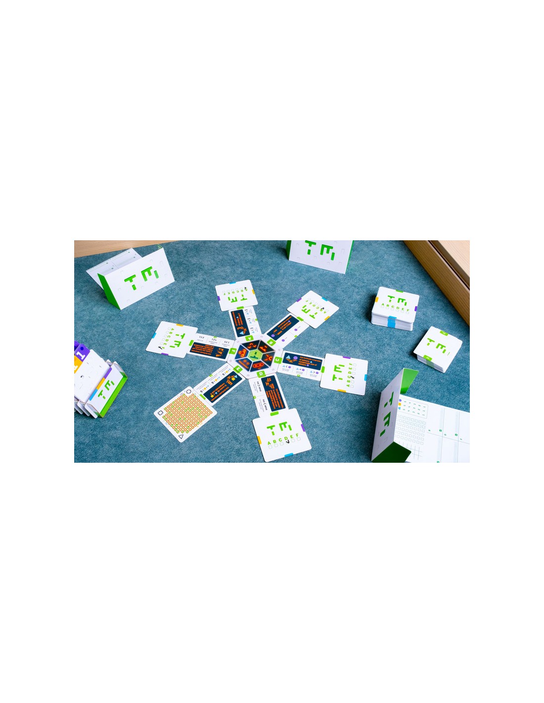 Turing Machine es un juego de deducción de 1 a 4 jugadores que se juega sin turnos. Tendremos que descifrar un código de tres dígitos con valores del 1 al 5. Para ello, deberemos comprobar los verificadores que nos irán aportando datos para que solo una combinación sea posible.