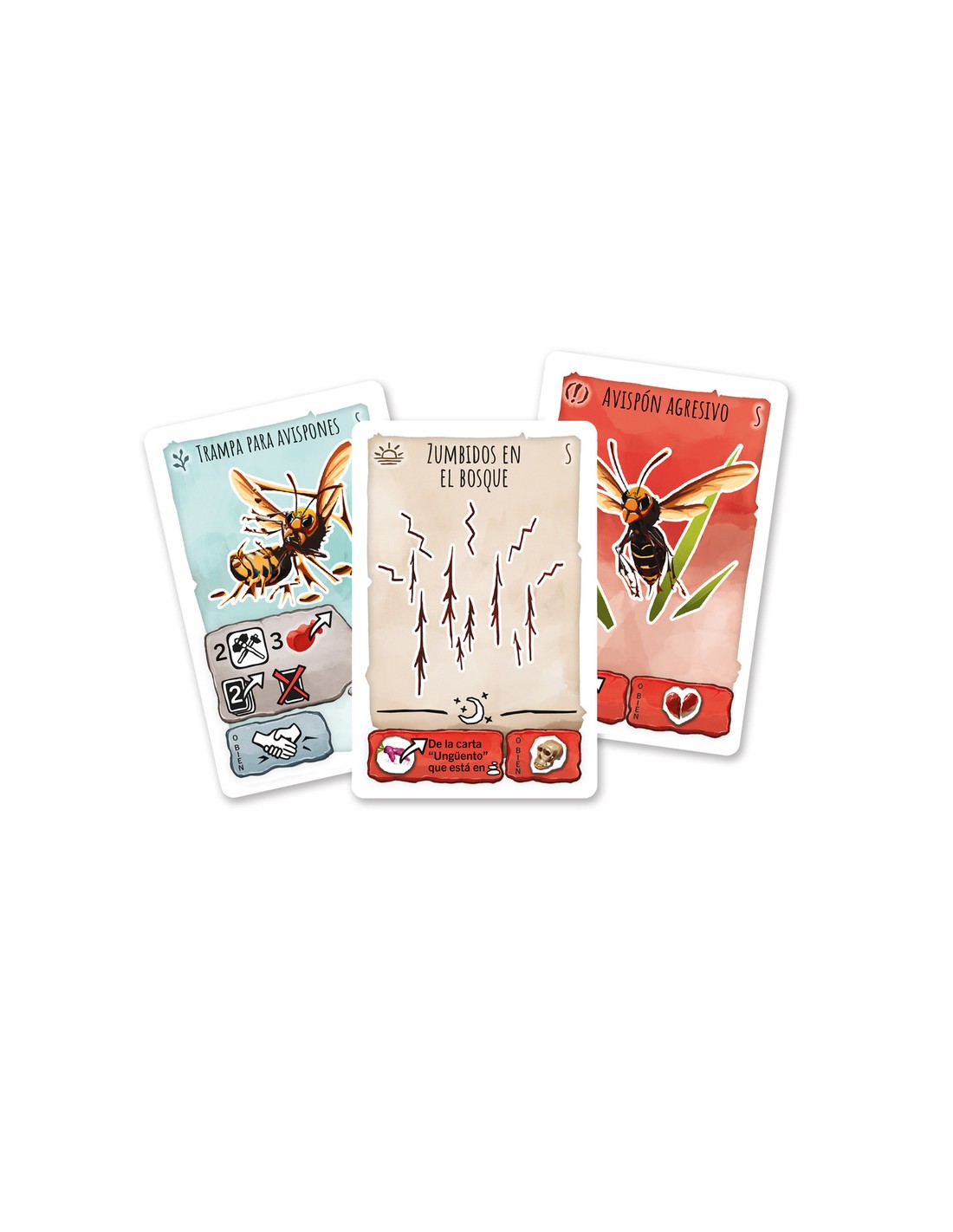 Dentro de la baraja de esta expansión, se encuentran las temibles cartas de avispón, a las que se aplican las mismas reglas que con las otras cartas de dorso rojo. También habrá cartas de peligros evitables, una mecánica que aparece en la primera gran expansión de Paleo, Un nuevo comienzo. El peligro que aparece se puede evitar si se cumplen algunos requisitos. Por suerte, este módulo también incorpora la carta de ungüento, que permite almacenar raíces medicinales para ir curando a los miembros del grupo, o la quema, que se usa para prender fuego a los nidos.