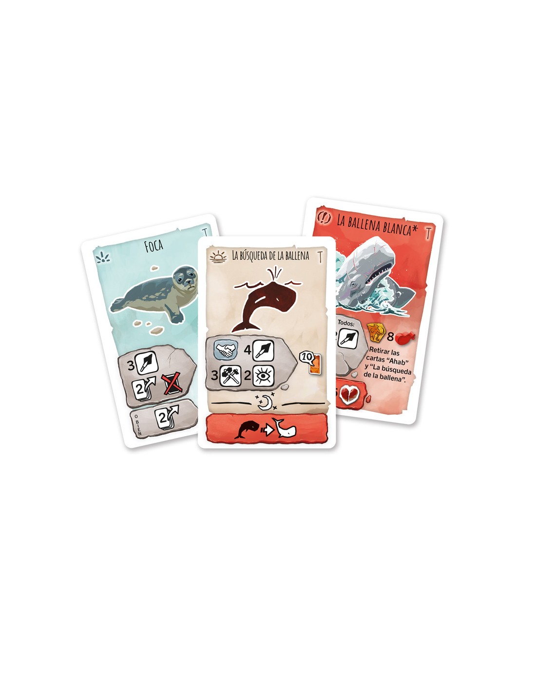 ¿Preparados para enfrentaros a nuevos peligros en la Prehistoria? La expansión La ballena blanca incluye una baraja de cartas de mar, que se usan cuando el grupo decide salir a navegar. En vez de descubrir una carta de su pila, un jugador puede decidir salir a navegar; los únicos dos requisitos son que alguien cuente con una balsa y que ningún jugador haya acostado a su grupo todavía. Mientras dure la travesía, todos los grupos se ayudan automáticamente entre sí, enfrentándose a los peligros que aguardan en las 13 cartas de mar.