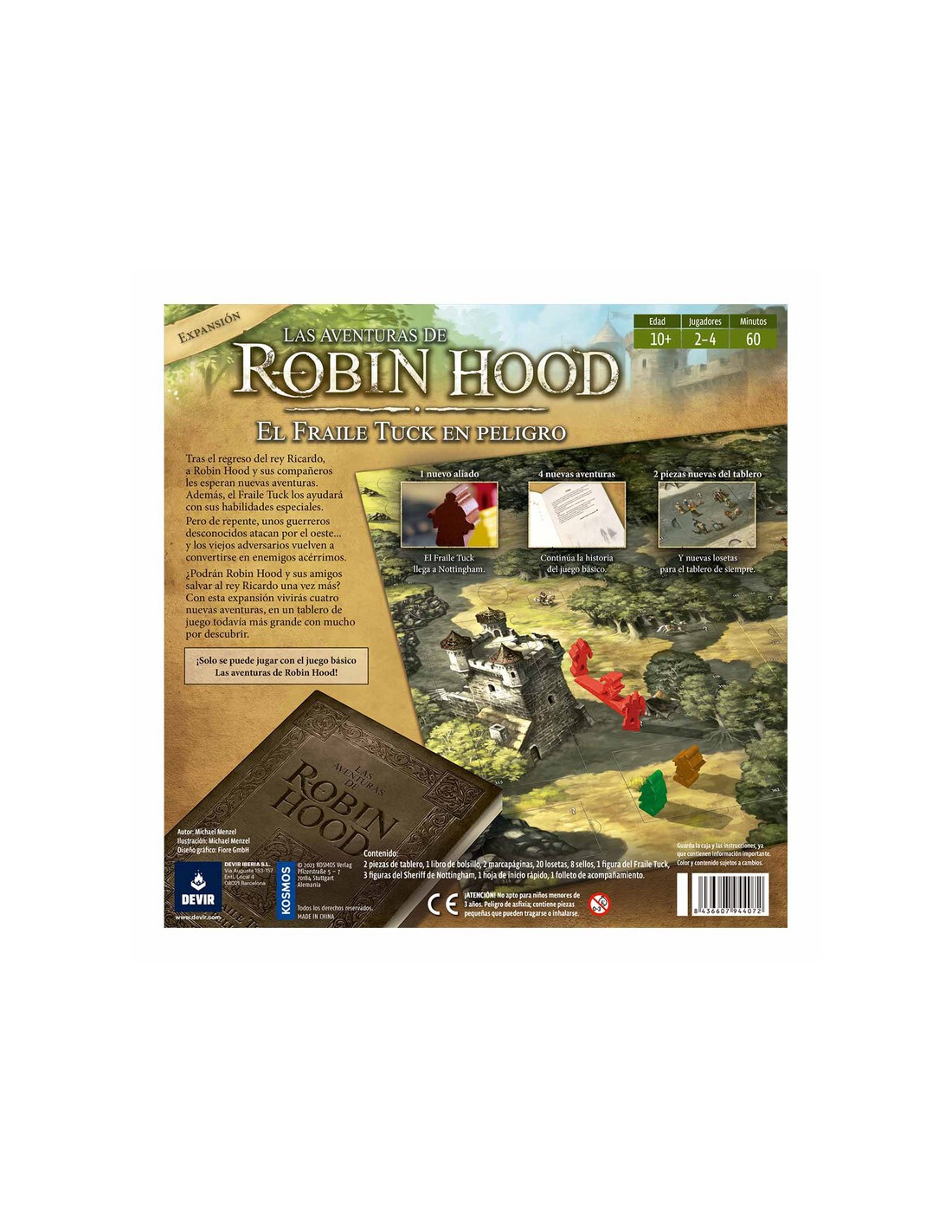 Las Aventuras de Robin Hood. El Fraile Tuk en peligro, es una expansión del afamado juego Las Aventuras de Robin Hood. Un libro, con c 4 uatro nuevas aventuras, nuevos enemigos y un nuevo personaje, el Fraile Tuk que nos ayudará en nuestra misión, nos harán volver a Nottingham y tratar de salvar al rey Ricardo una vez más.