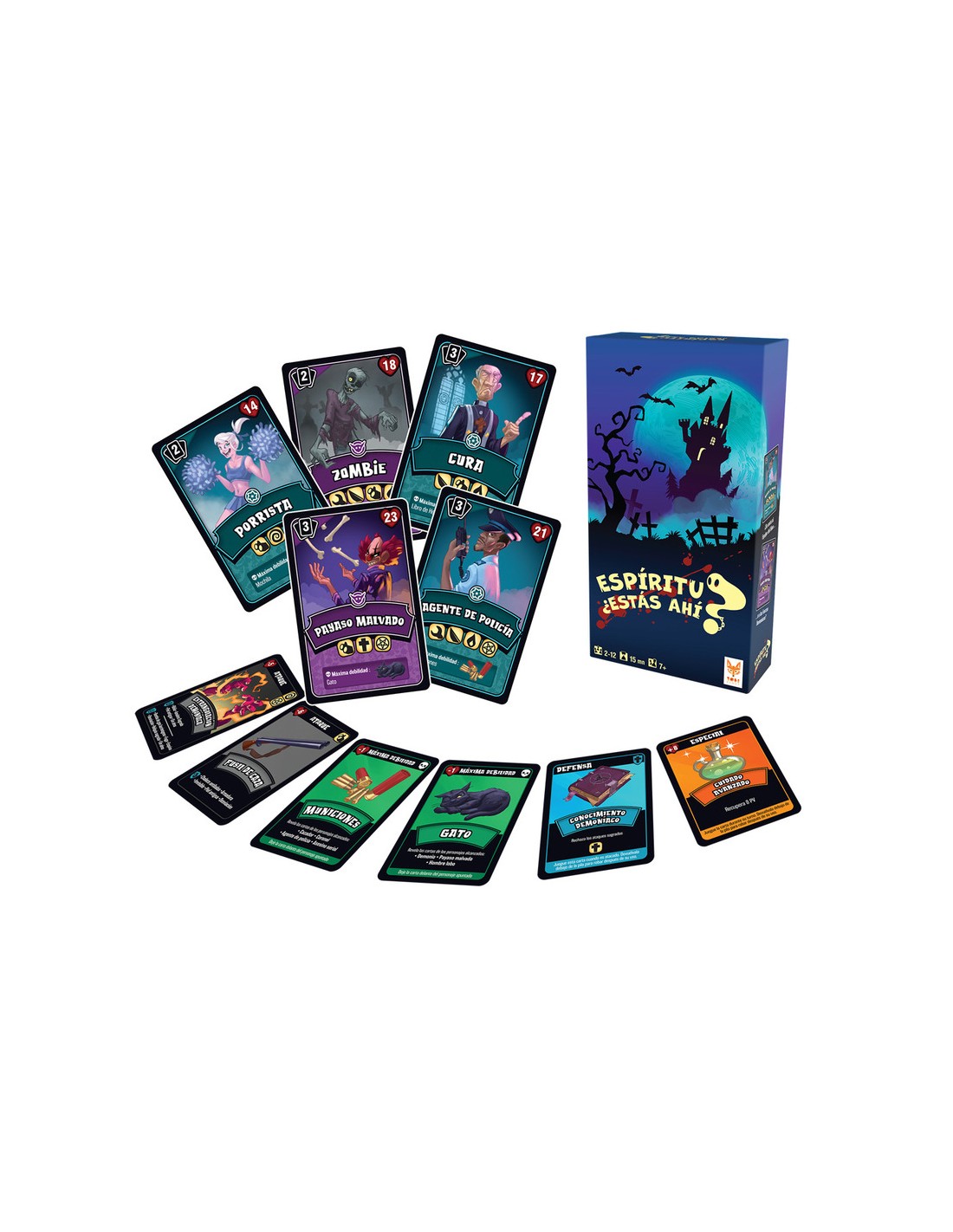 "Espíritu, ¿Estás Ahí?" es un juego de cartas cooperativo y lleno de suspense publicado por Topi Games, ideal para familias, fiestas y reuniones con amigos. Ambientado en un castillo cubierto de niebla, este juego mezcla misterio, humor y deducción en partidas rápidas y emocionantes.