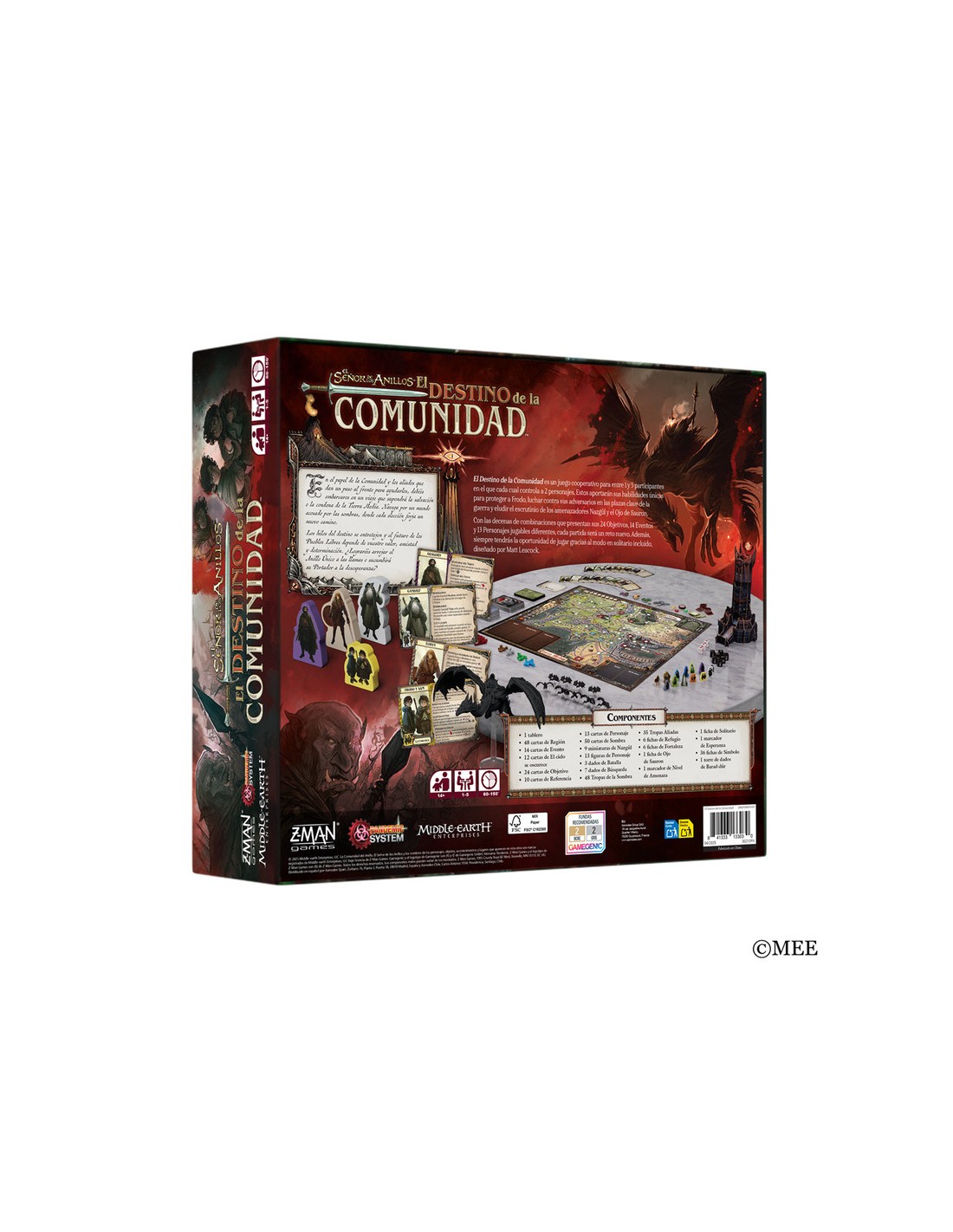El Destino de la Comunidad es un juego cooperativo para entre 1 y 5 participantes en el que cada cual controla a 2 personajes. Estos aportarán sus habilidades únicas para proteger a Frodo, luchar contra sus adversarios en las plazas clave de la guerra y eludir el escrutinio de los amenazadores Nazgûl y el Ojo de Sauron.