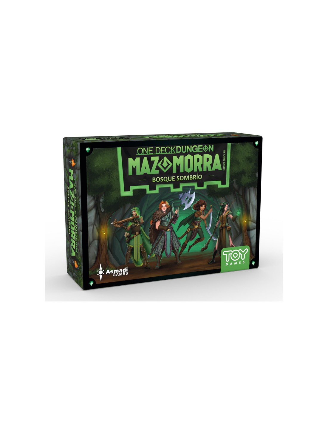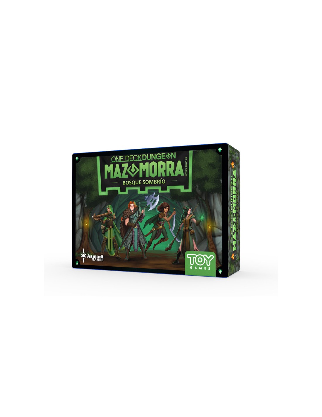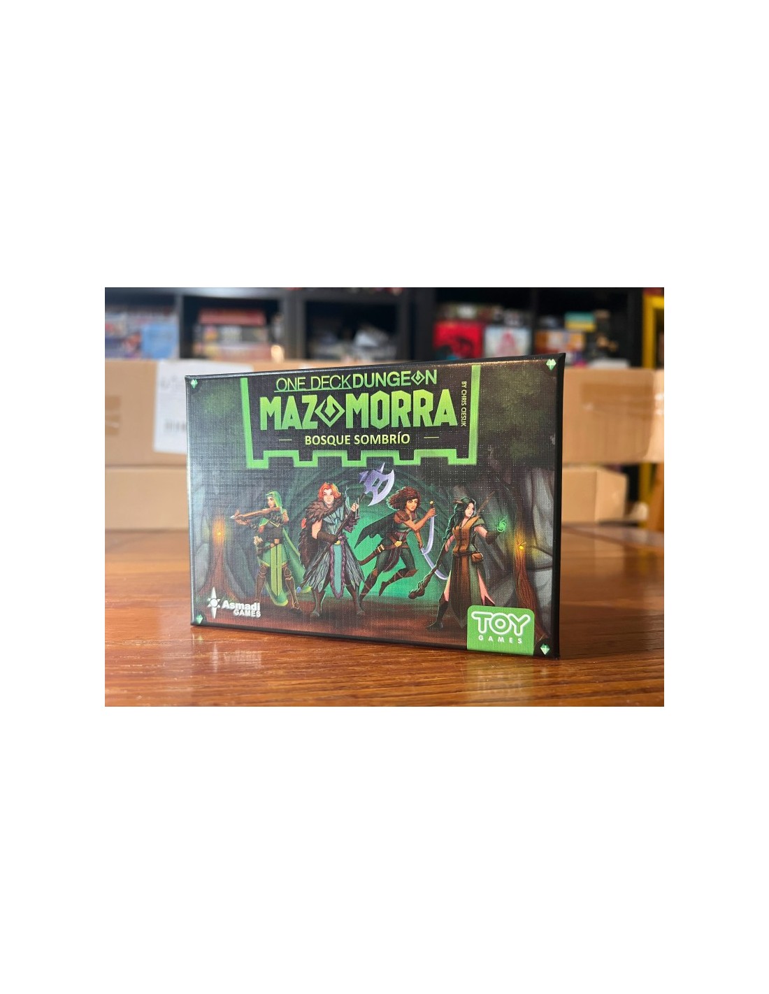 Bosque Sombrío es una expansión independiente del juego Mazomorra: One Deck Dungeon, que introduce nuevos héroes, enemigos y desafíos ambientados en un bosque encantado lleno de peligros. Diseñado para 1 o 2 jugadores, esta versión mantiene la esencia roguelike del juego base, con una ambientación más oscura y estratégica.