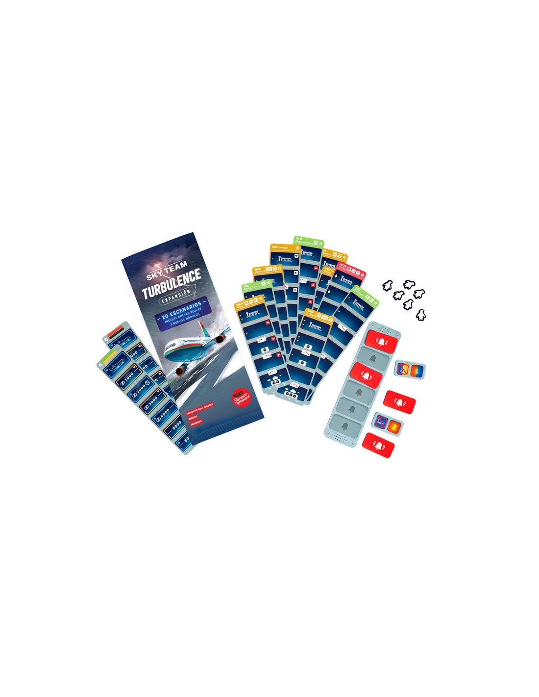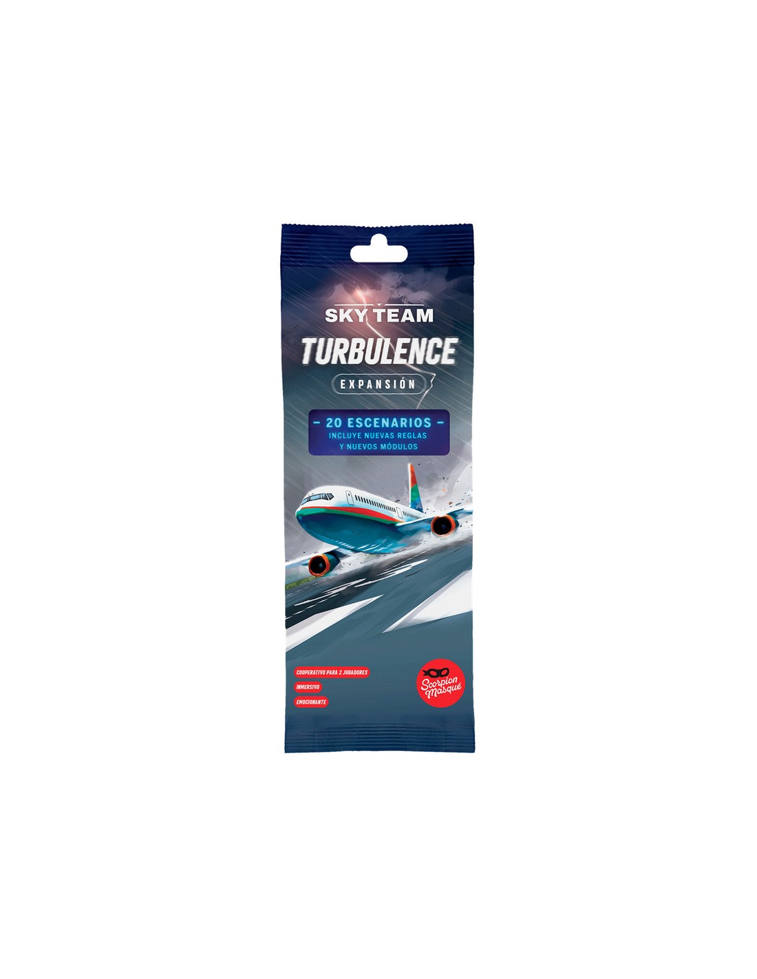 Sky Team: Turbulence es la esperada expansión del aclamado juego de mesa cooperativo para 2 jugadores, Sky Team (ganador del Spiel des Jahres 2024). Diseñado por Luc Rémond, este complemento esencial eleva la dificultad y la emoción, obligando a los pilotos a enfrentarse a condiciones de vuelo extremas y fallos técnicos inesperados.