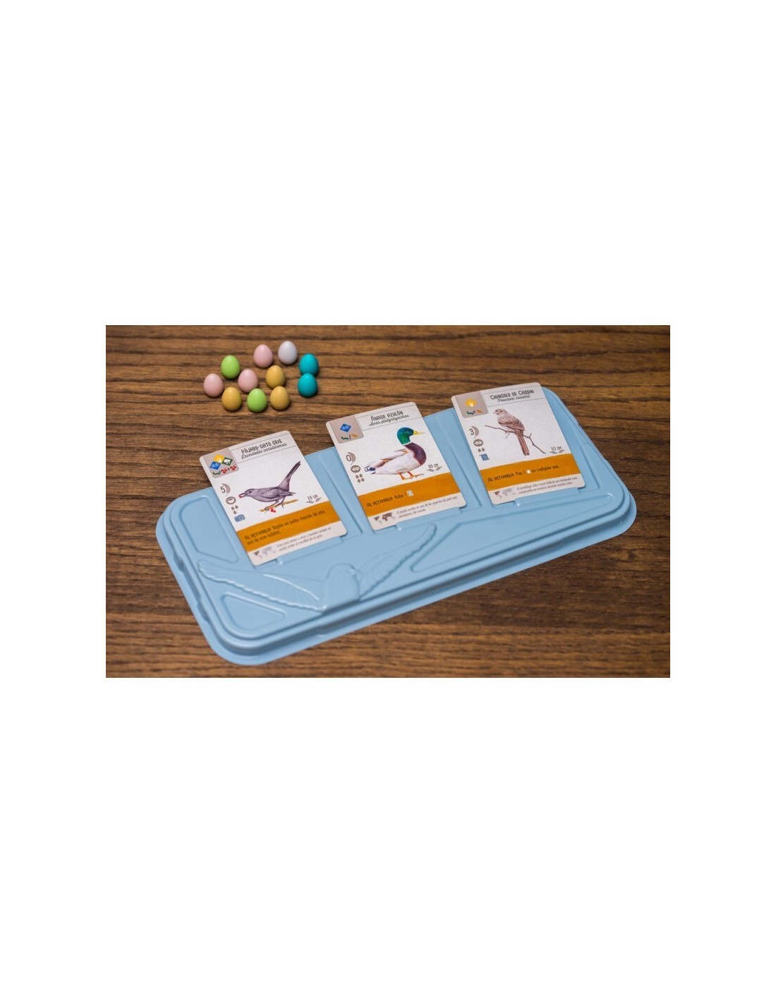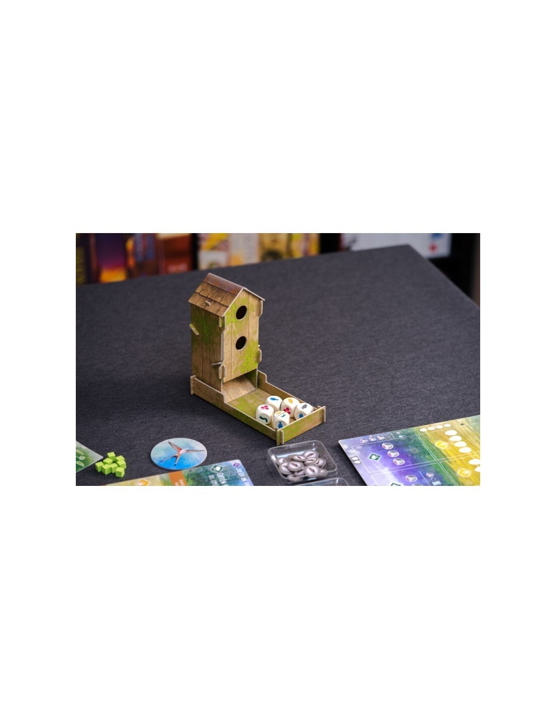 • Gana fichas de alimento con dados especiales que se lanzan en una torre de dados con forma de comedero de aves