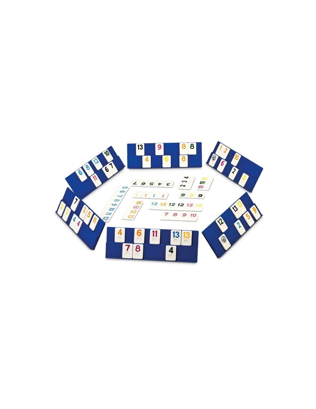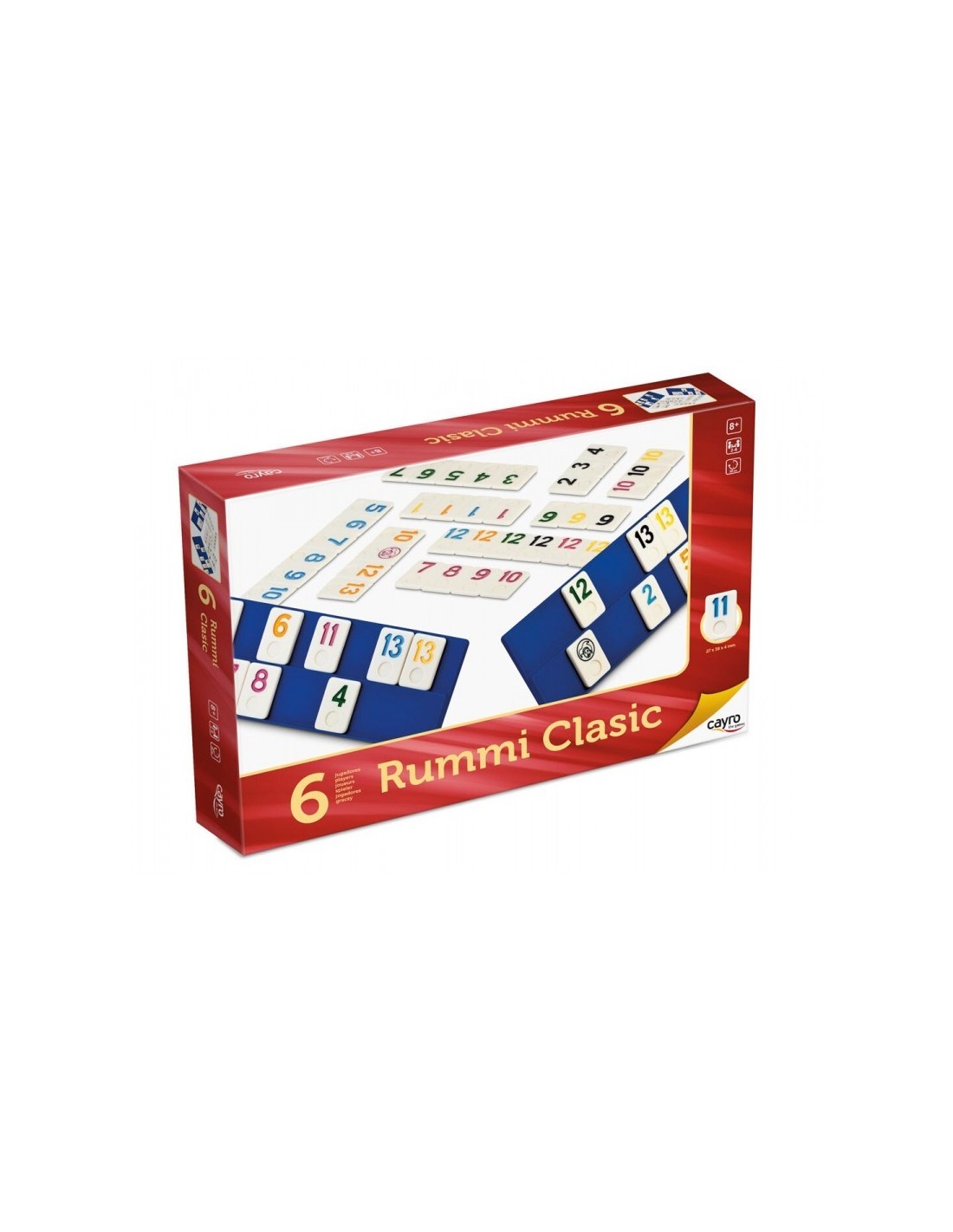 Rummi Clasic para 6 jugadores con ficha grande (2,6 x 3,8 x 0,4 cm). Viene presentado en una caja de cartón forrado e incluye los 6 atriles necesarios para jugar. Con este juego tendrás que hacer combinaciones de escaleras de color o agrupar el mismo número en diferentes colores y se el primero en descartarte de todas tus fichas.