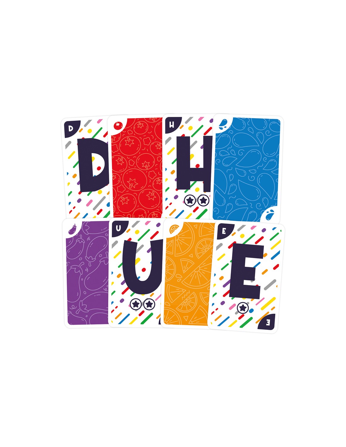 Para empezar a jugar, barajad las 50 cartas (que por un lado tienen una letra y por el otro muestran un color) y formad dos mazos de más o menos del mismo tamaño. Dad la vuelta a uno de ellos y volved a barajar, de tal forma que letras y colores se mezclen. Tomad las dos primeras cartas y colocadlas de modo que una muestre una letra y la otra un color.
