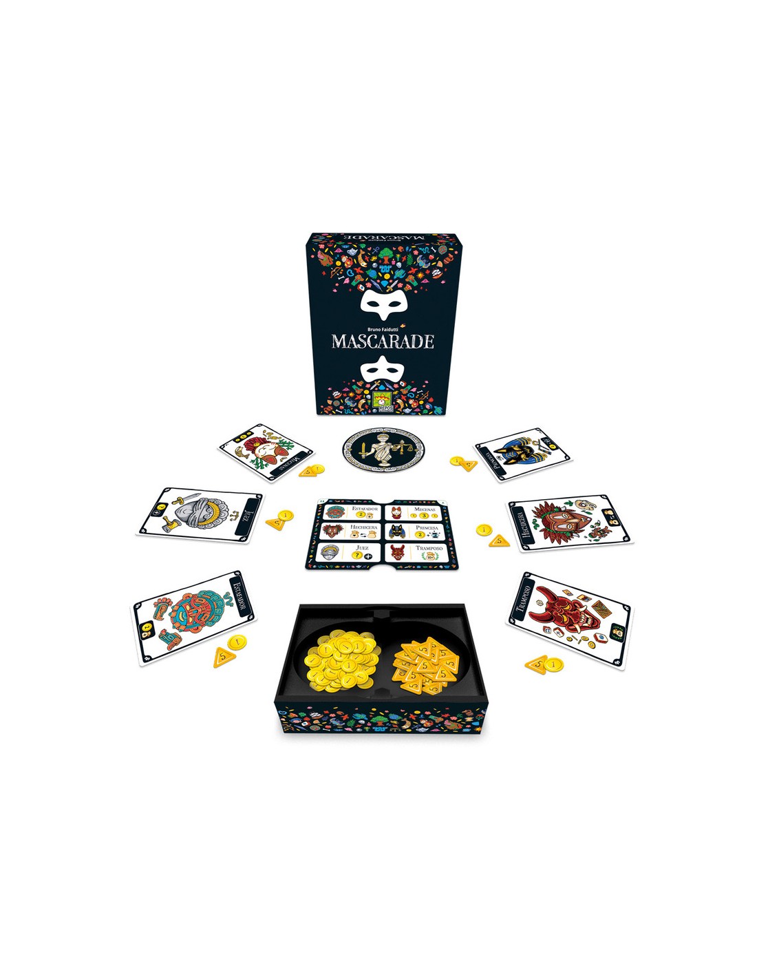 Mascarade es un juego de engaño de 2 a 13 jugadores, diseñado por el genial Bruno Faidutti.