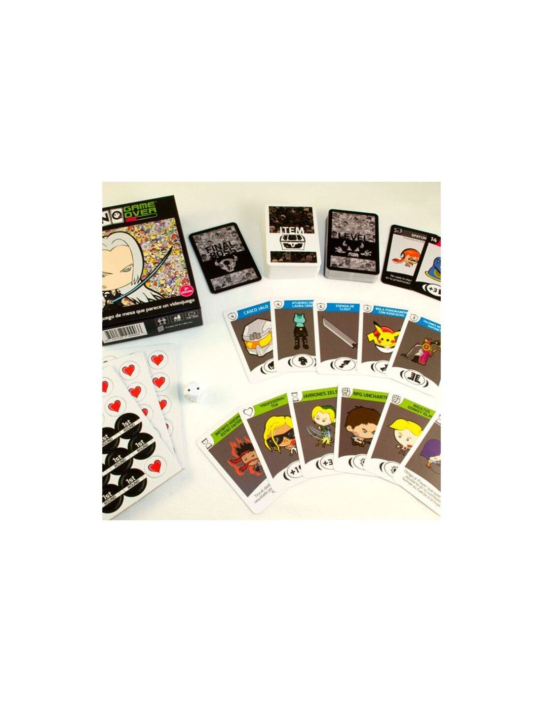 No Game Over es un juego de cartas inspirado en el mundo de los videojuegos. Deberemos enfrentarnos tanto a nuestros adversarios como a enemigos míticos propios de los más famososo videojuegos. Para ganar deberemos sere el último superviviente o bien hacernos con 6 vidas. Incluso si te quedas sin vidas, puedes seguir jugando como si fueras un fantasma con el fin de vengarte de todo aquel que te fastidió durante la partida.