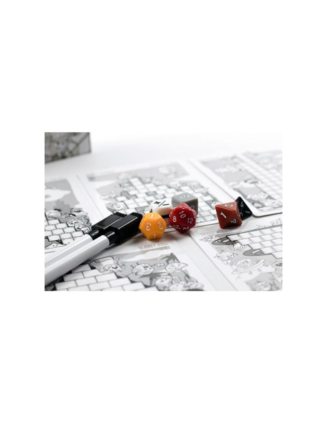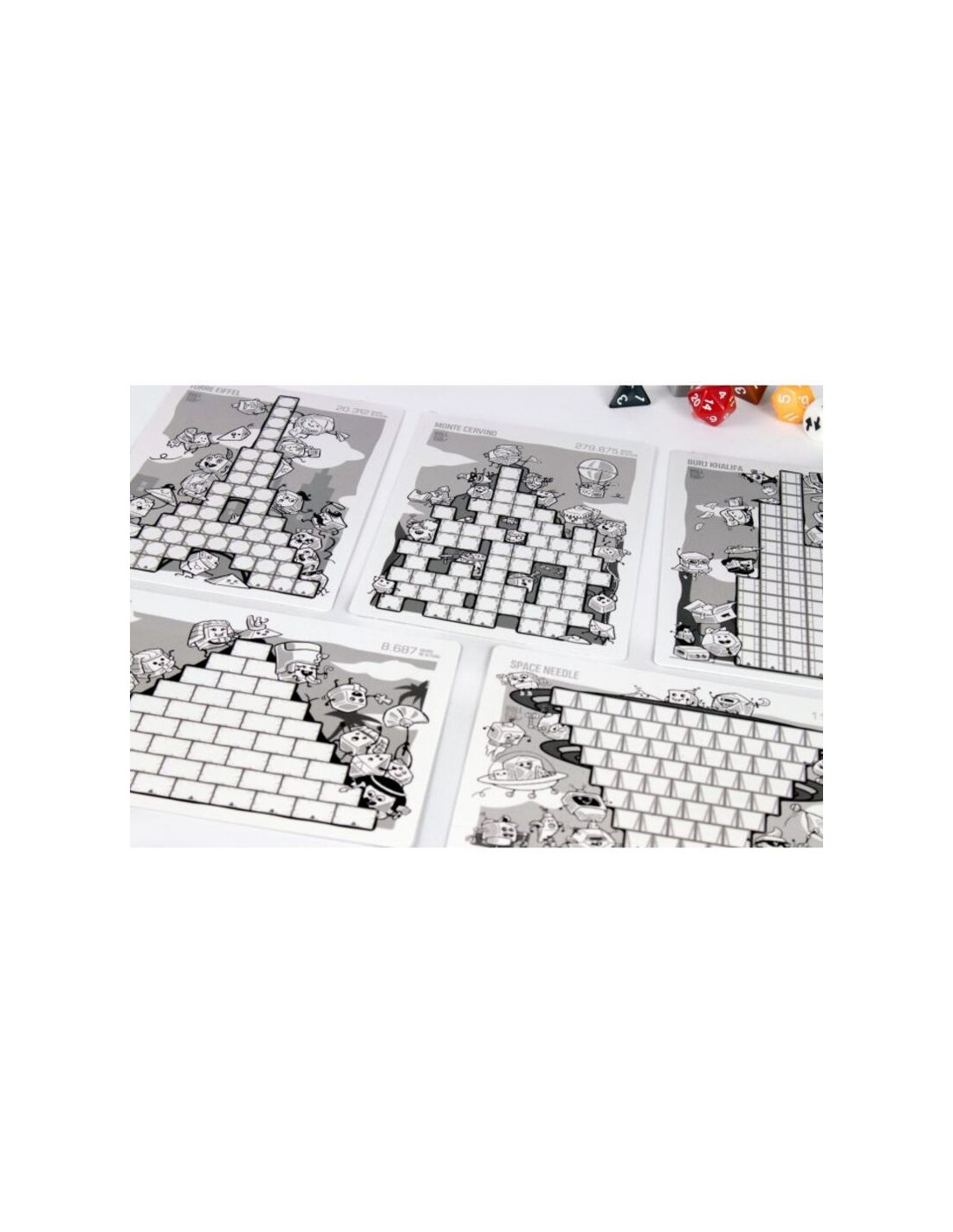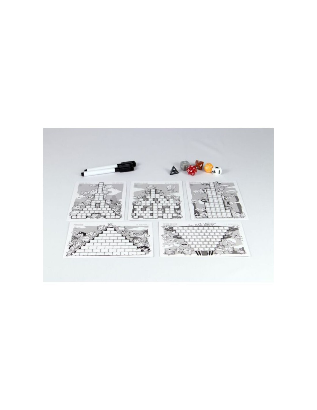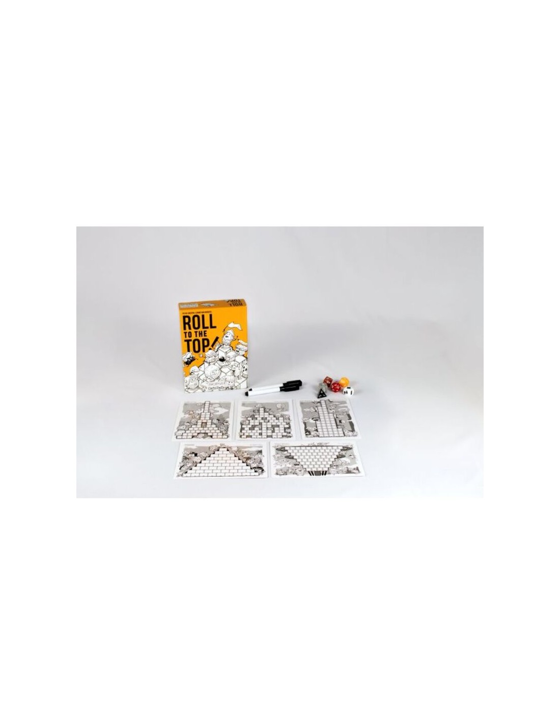 En Roll To The Top debéis decidir cuánto quieres arriesgar en tu carrera a la cima. Los dados de 4, 6, 8, 12 y 20 caras son muy caprichosos y debéis escoger qué números apuntar en vuestras pizarras de desafío. Podéis anotar unos dados y renunciar a otros o incluso sumar la cifra de varios de ellos, pero la condición indispensable a la hora de escalar en el desafío es que el número de una casilla debe ser siempre IGUAL o MAYOR al de la casilla inferior.