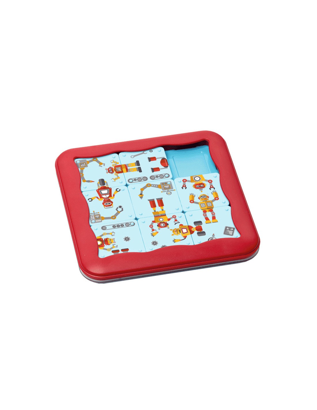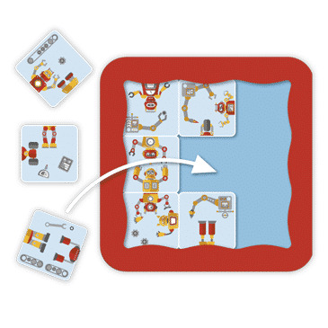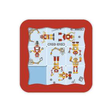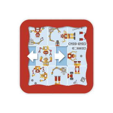 Taller de Robots es un divertido juego de ingenio para todas las edades con 48 retos. Pon a punto tus habilidades y crea los robots más geniales. Cada robot debe tener ruedas o patas en una pieza y un cuerpo con cabeza en una pieza adyacente. ¡Solo se pueden mover deslizándolas! Has encontrado la solución cuando todos los robots están ensamblados.